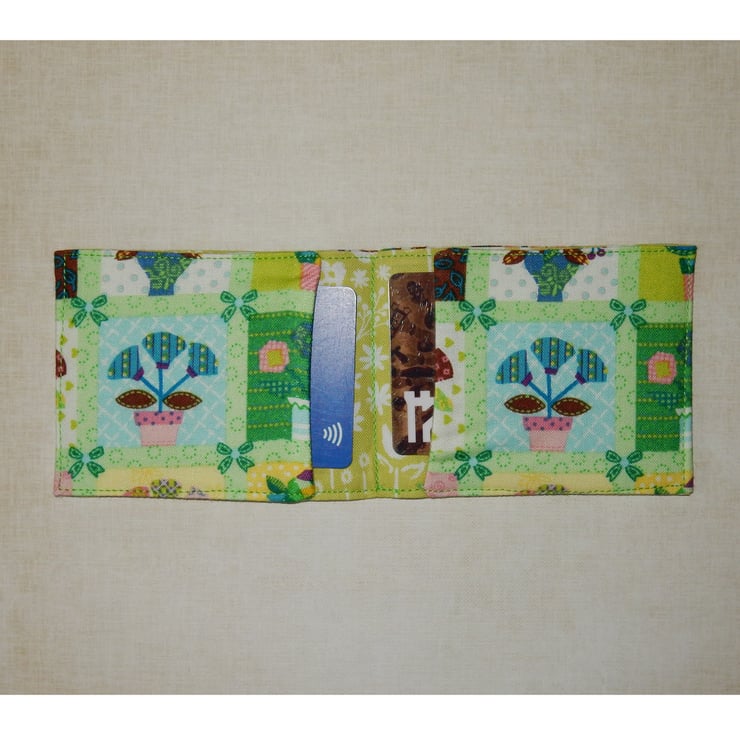 This bright coloured wallet would be easy to find in a handbag, and would be fun to use. It is ideal for travel cards, Oyster cards, bus pass or even credit cards. It measures approx. 3.5 x 3 inches folded and 7.5 inches open. It is made from brightly coloured cotton fabric and is lined in floral fabric.