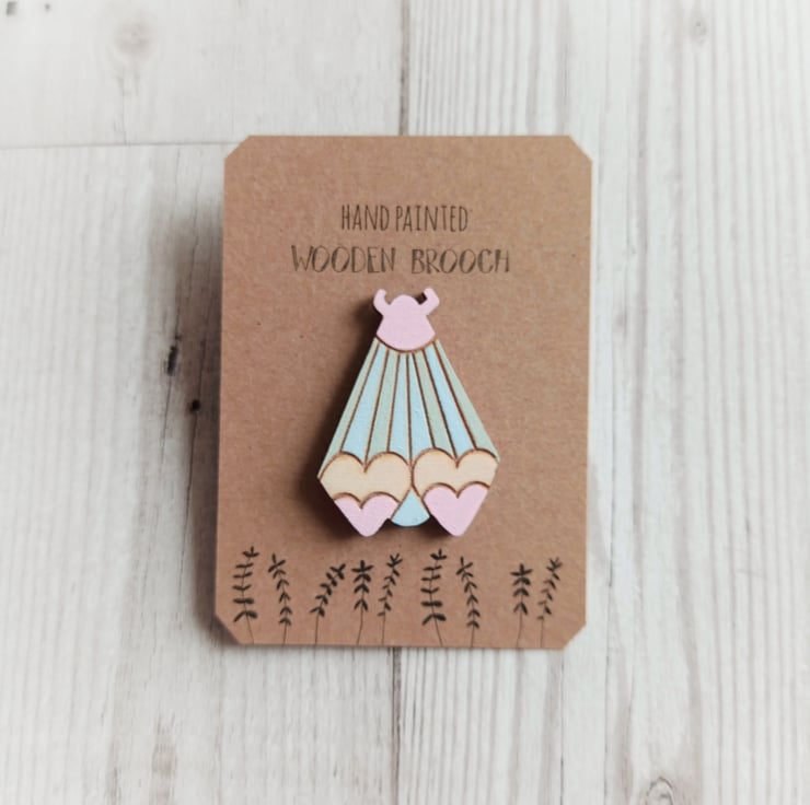 These laser-cut and engraved wooden moth brooches are inspired my love of nature and all it's fascinating creatures. They are hand-painted in pastel colours and come attached to a backing card - ready to give as a gift or keep as a present to yourself!