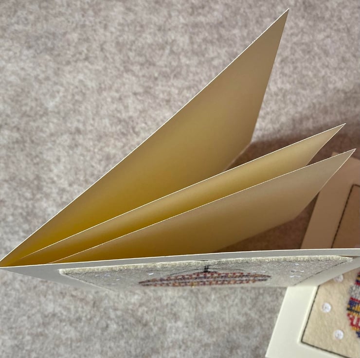 The card measures approx. 15 x 15cm and comes with a Cream envelope and a cello wrap for protection. There is a Cream plain paper insert at the centre fold.
