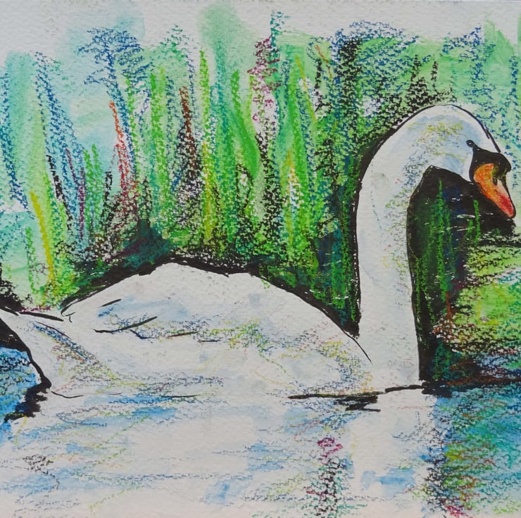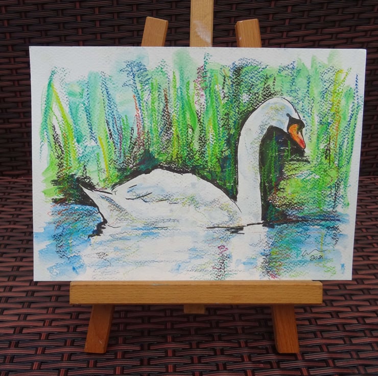 Original watercolour, ink and Inktense crayons painting on acid free 300gsm acid free watercolour paper of a very cute swan!