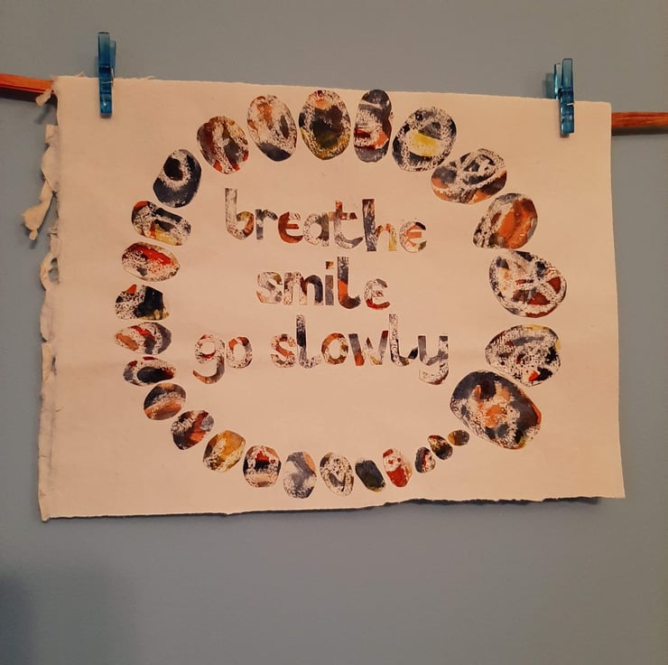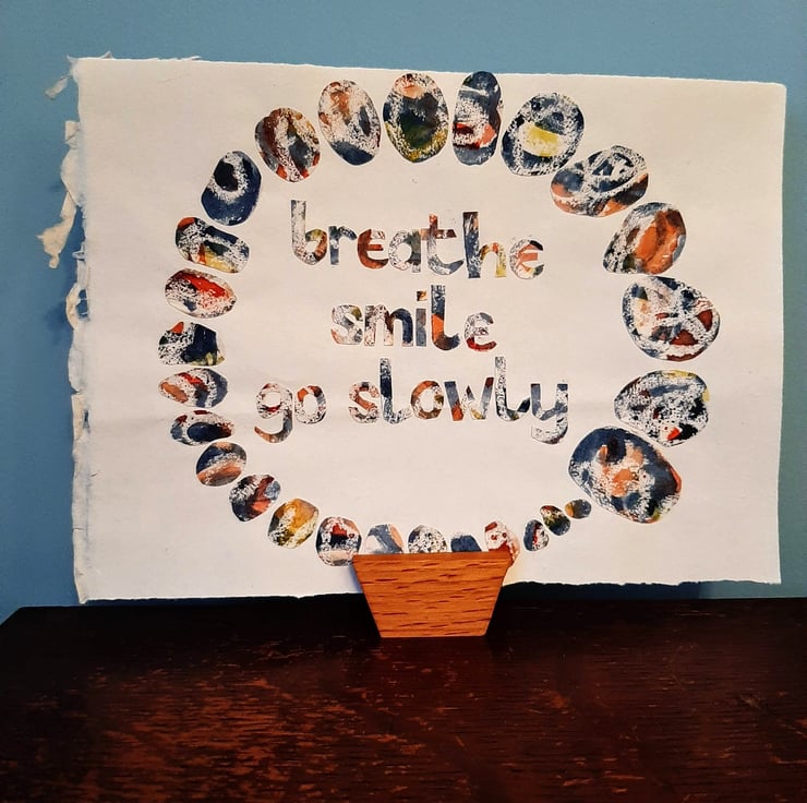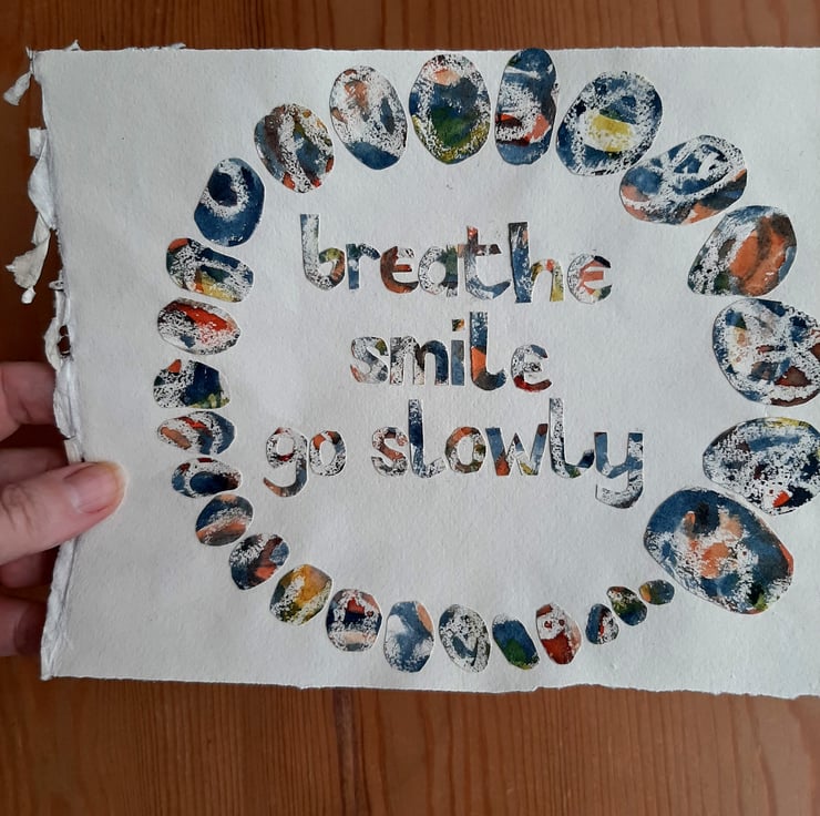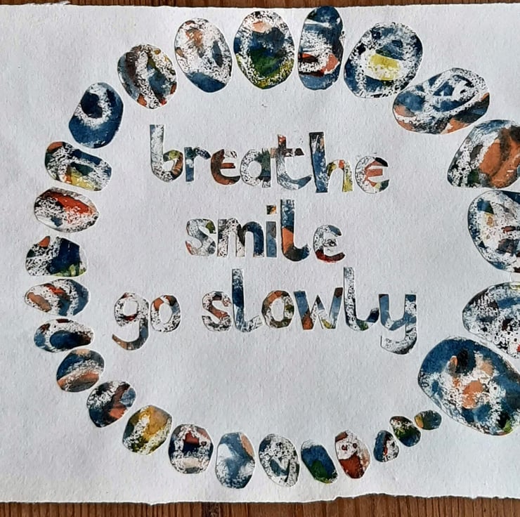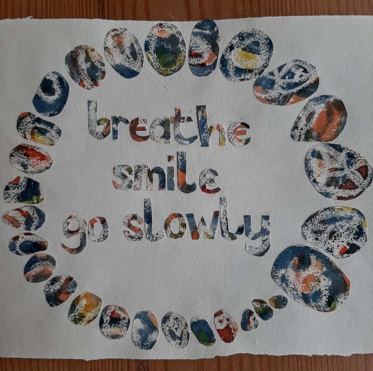 The quote comes from my Buddhist teacher Thich Nhat Hanh, "breathe, smile, go slowly". It's a lovely reminder to be mindful as we go about our day.