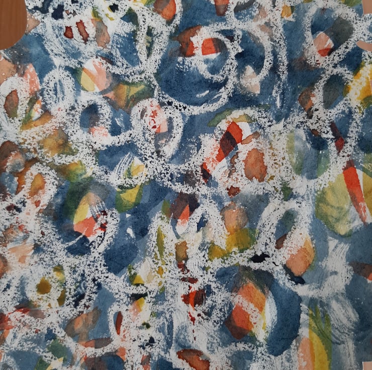 For this piece I decorated the paper using specific colours from the Coloricombo Instagram challenge. Have a look at the last image to see the paper decorated before cutting the pebbles and letters out.