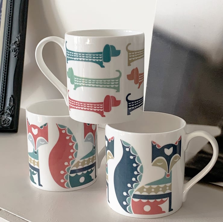 All mugs are kiln fired high quality bone china and are printed and decorated right here in the UK. All mugs are packaged in a strong brown branded postal box so they are easy to send wherever they are going. Handwashing or use of lower temperature dishwasher cycles recommended to keep your mugs looking beautiful.