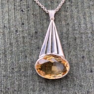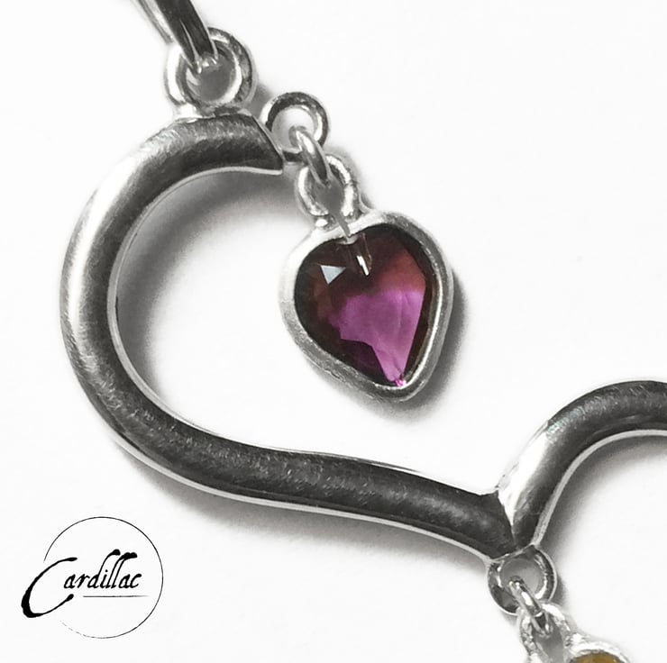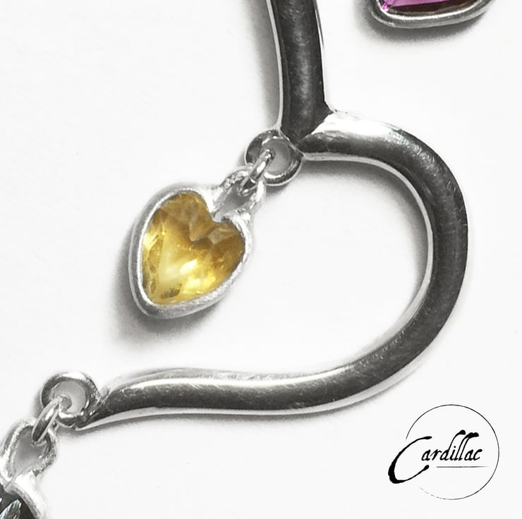 It is entirely handmade in recycled sterling silver, set with old (antique??) almandine garnets and a golden citrine in the 'spectacle' framed pendant settings. The top grooved bale has a tiny 9ct red gold heart soldered on.