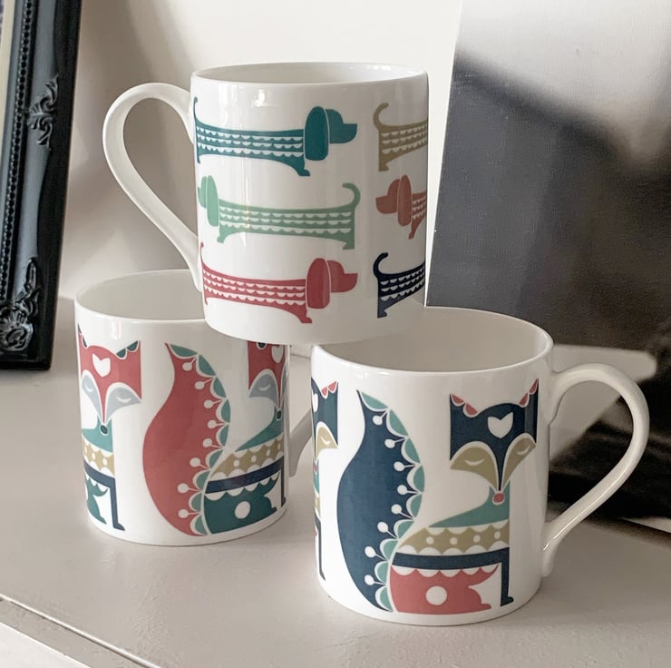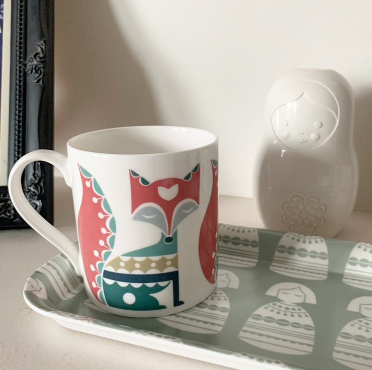 This cute Vintage Fox bone china mug is a lovely mix of mid century colour pops. A contemporary design, with a bold 3 fox repeat, the mug both beautiful & functional. A perfect way to enjoy your Sunday cappucino or a lovely cup of tea.
