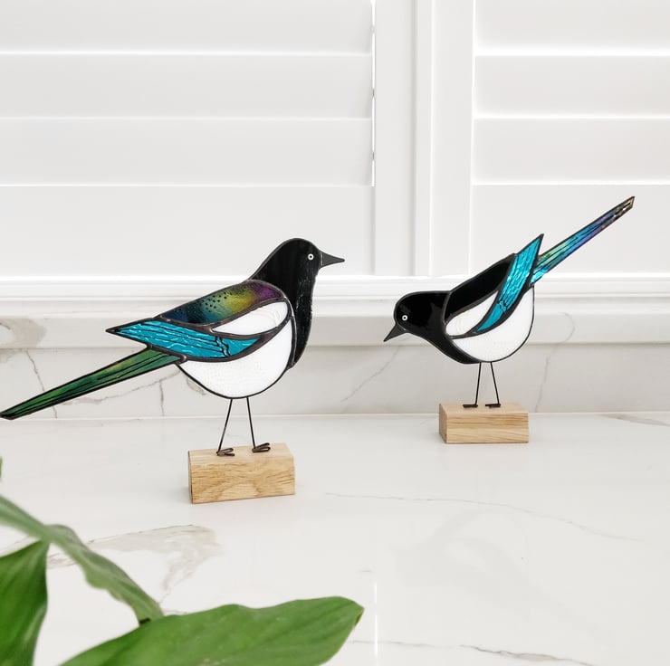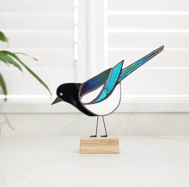Beautifully illustrated and handcrafted in stained glass this little suncatcher would make a gorgeous, fun addition to any home. Whether displayed on your favourite shelf or shinning bright in front of your window. This little bird is a great way to introduce some colour and create a more contemporary, curated space within your home.