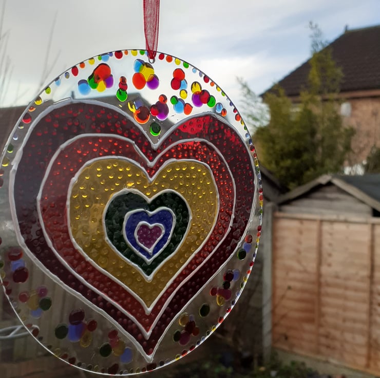 This Pride Flag sun catcher is made from glass which has been hand painted using glass paints.