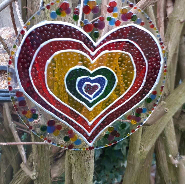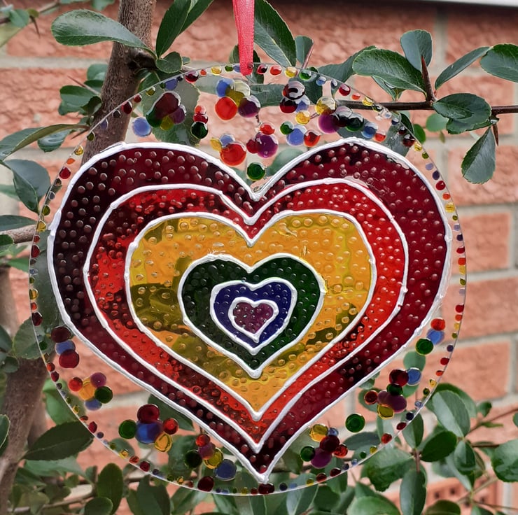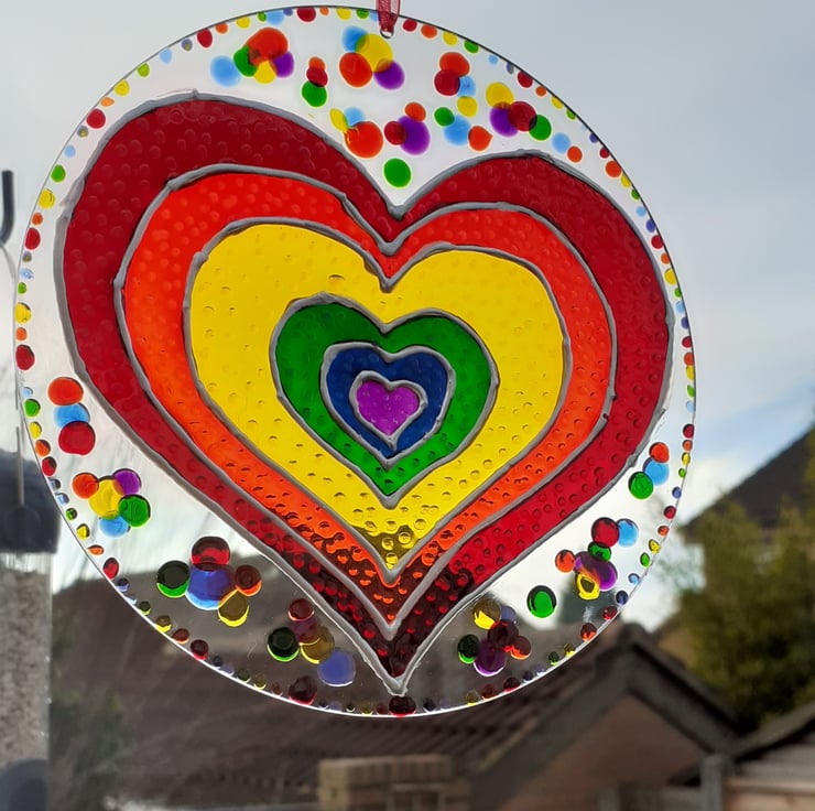 The heart has been painted using transparent paints in the colours of the LGBT Pride Flag.