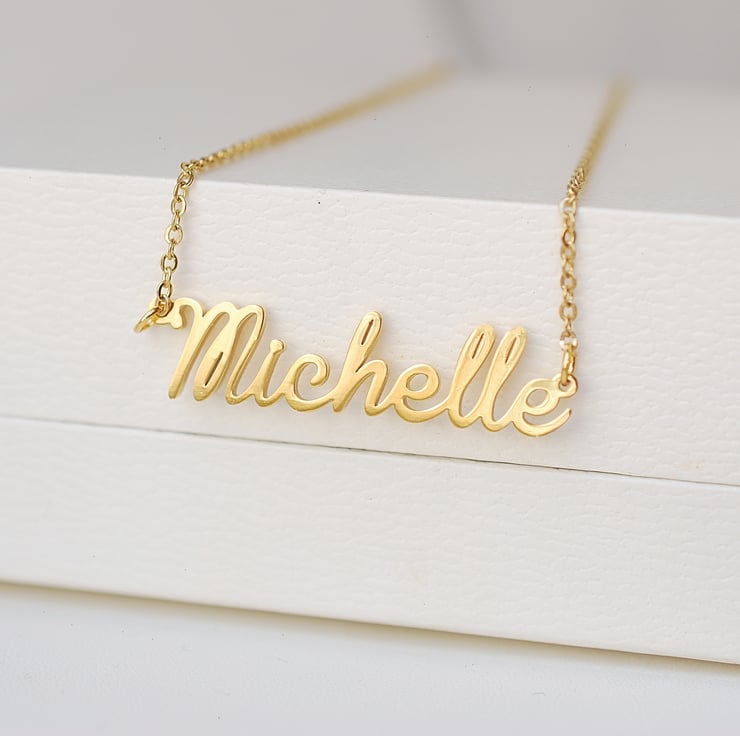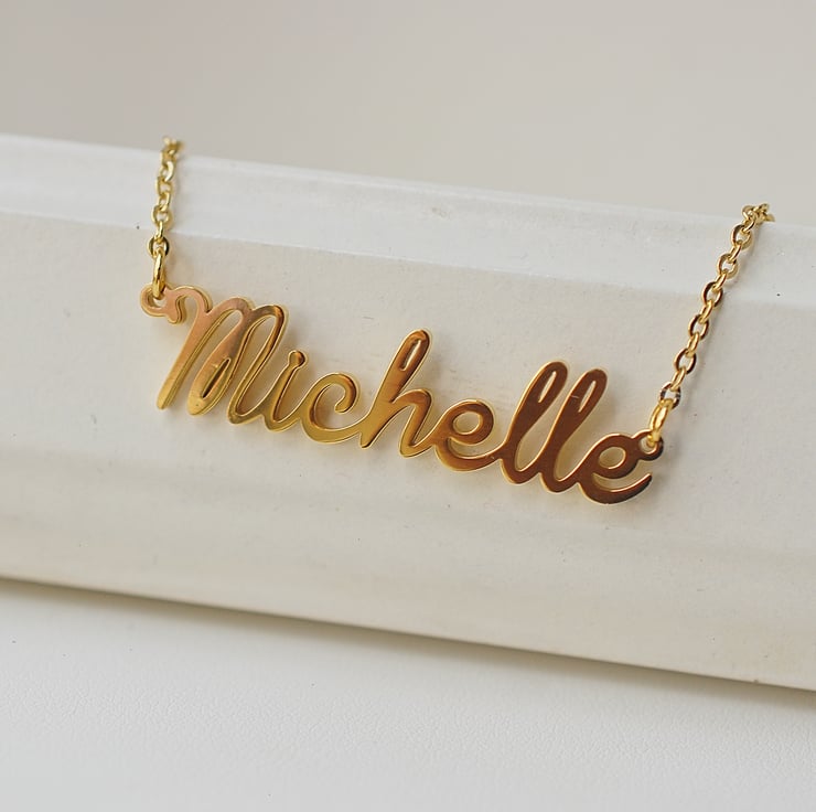 18k Gold plated Michelle nameplate name pendant necklace, Michelle name gift