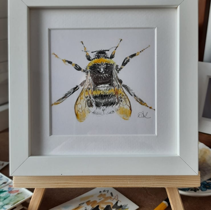 Water colour bee painted on watercolour paper and presented in a black or white frame measuring 7" x 7"