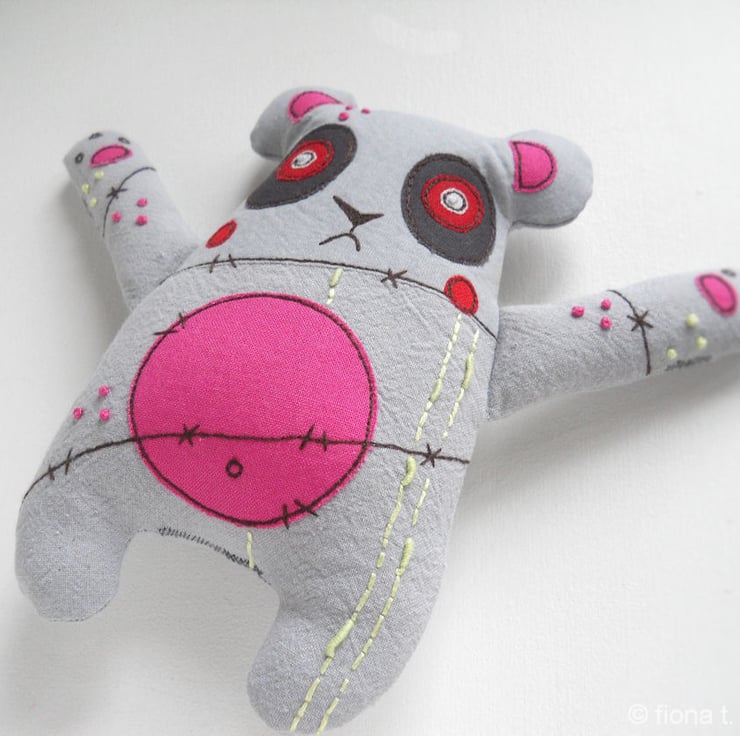 zombie panda is made from heavy weight calico. he’s stuffed with polyester filling (CE & BS5852) and finished by hand.