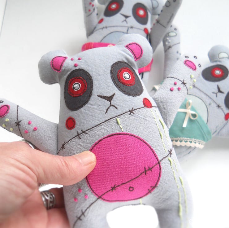 panda has been made entirely on a domestic sewing machine – there is no computerised wizardry in my work - everything is cut, stitched & drawn freehand by me.