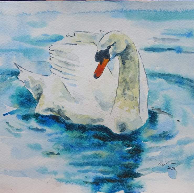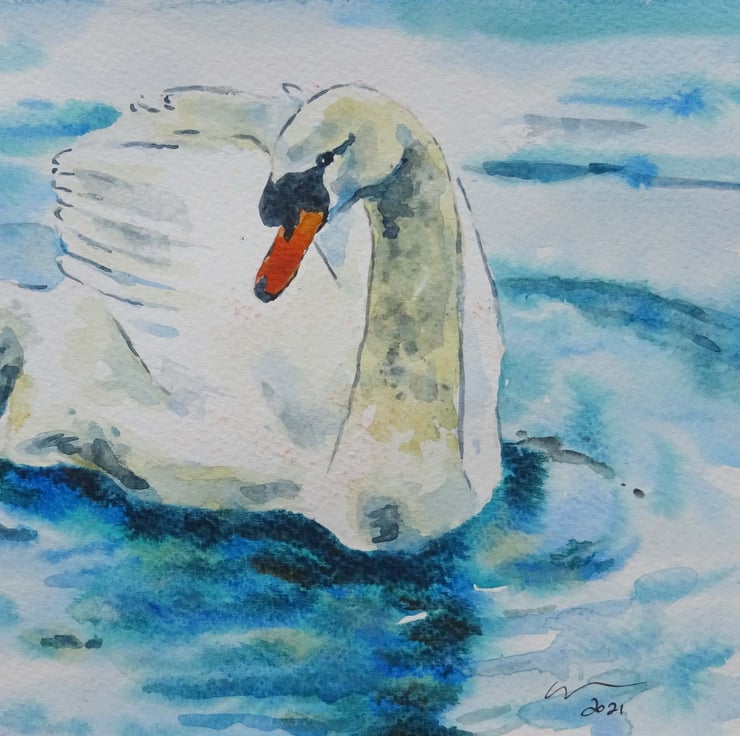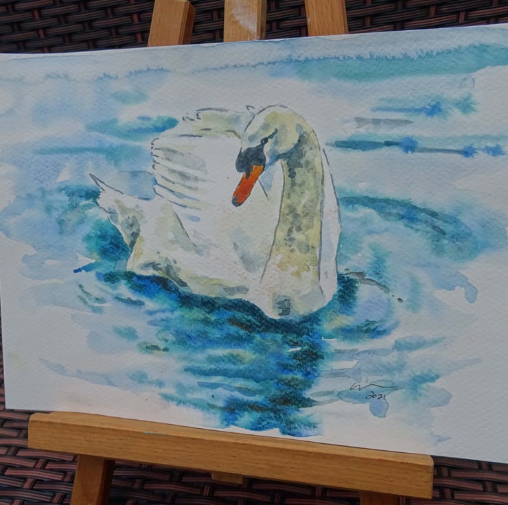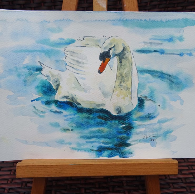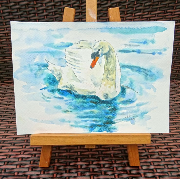 Original watercolour and ink painting on acid free 300gsm acid free watercolour paper of a very cute swan!
