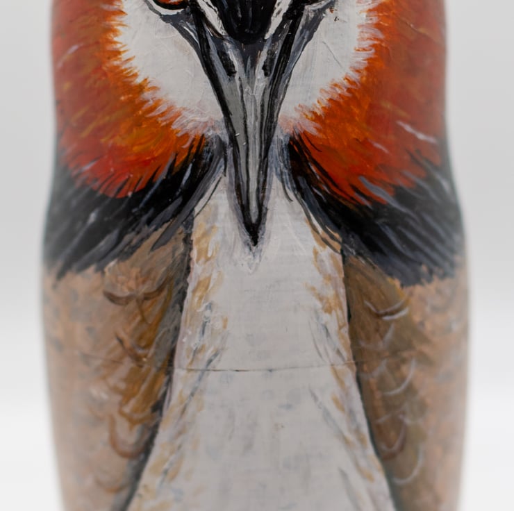 Inside the grebe is a water vole, measuring approximately 12cms tall by 6cms wide.