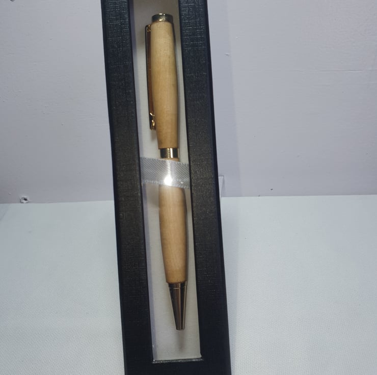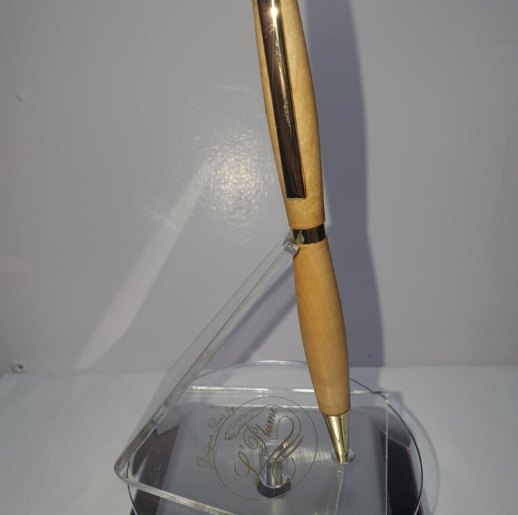 This pen is crafted from ash, its light colour and fine grain is highlighted by the 24kt gold plated features.