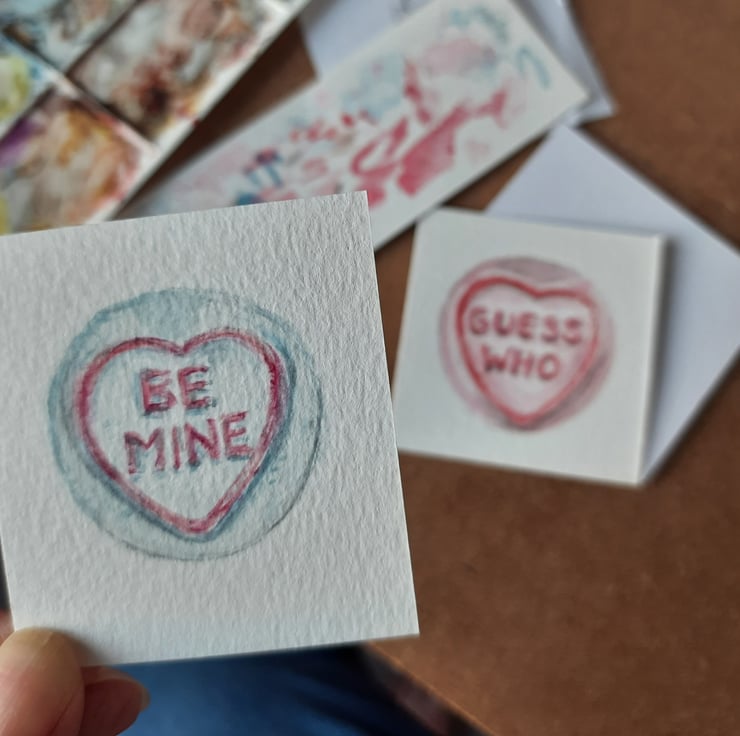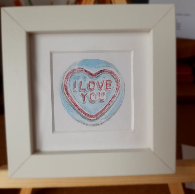Love heart sweets are a lovely way to pass on your Valentine message & these will last forever! Let me know the message you would like on uour painting & the colour you require xx