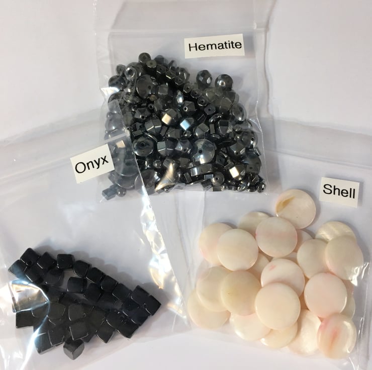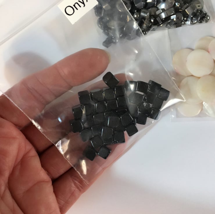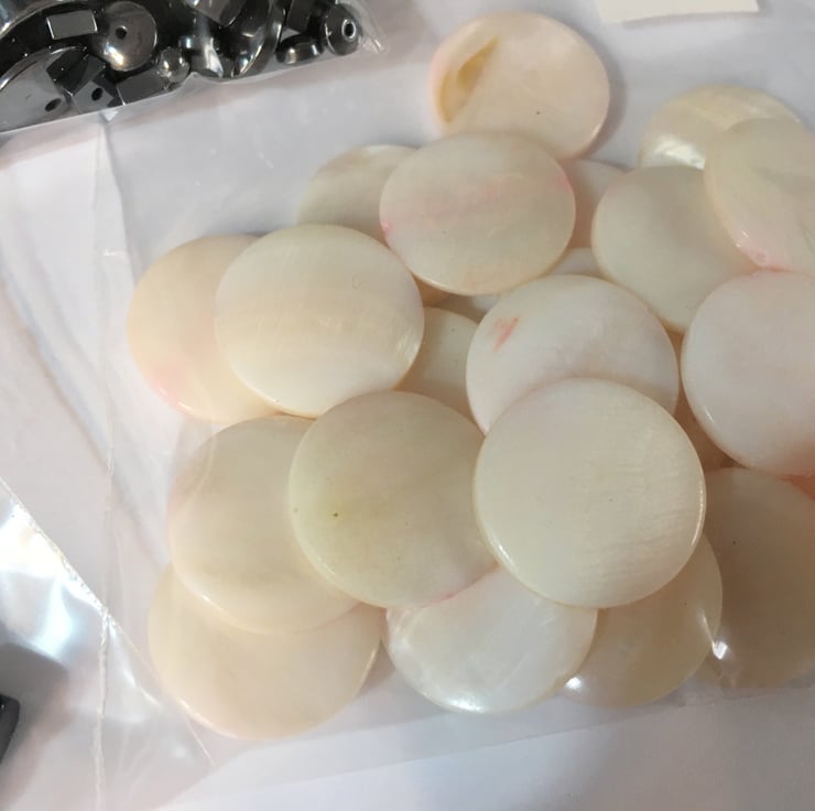 Mixed Beads. 17mm pink Shell discs (25 beads) Black Onyx Cubes (corner to corner drilled 40 beads) Hematite Mixed 110g