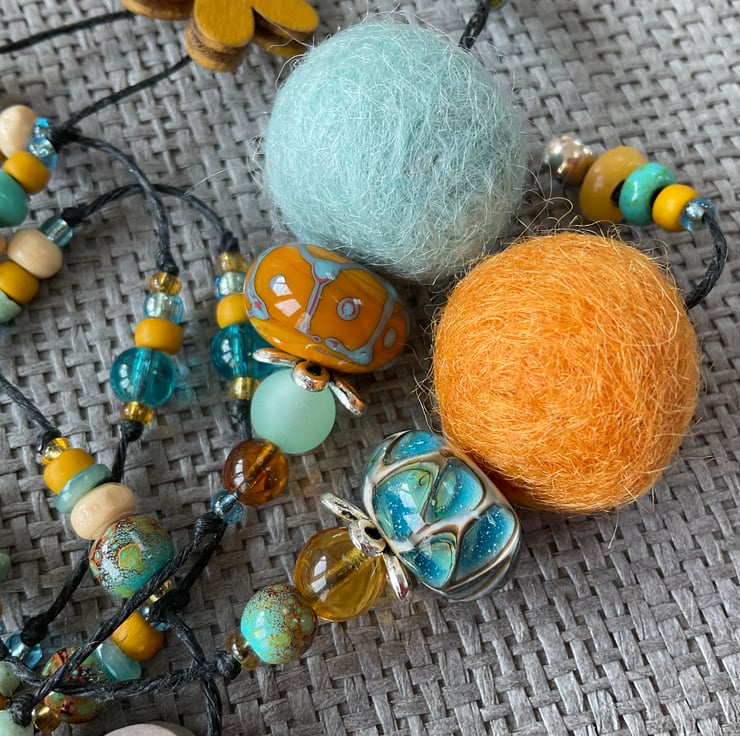 I have a passion for colour, especially bright and unusual colour combinations. I absolutely adore this necklace. The colours remind me of sand dunes and pale, windswept skies.