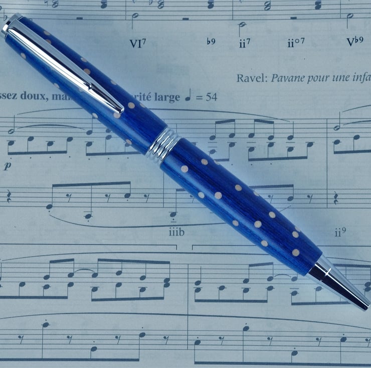 Wood; Blue dyed with Birch dots.