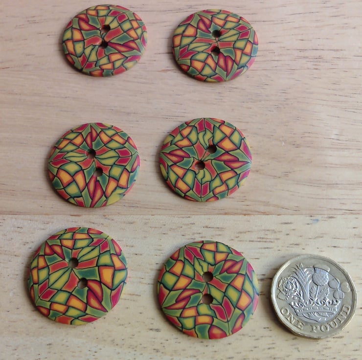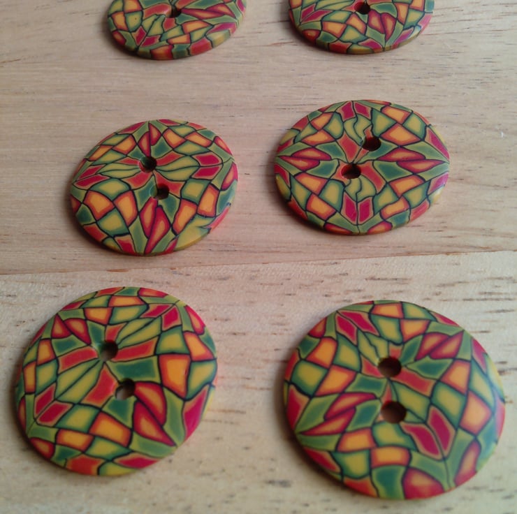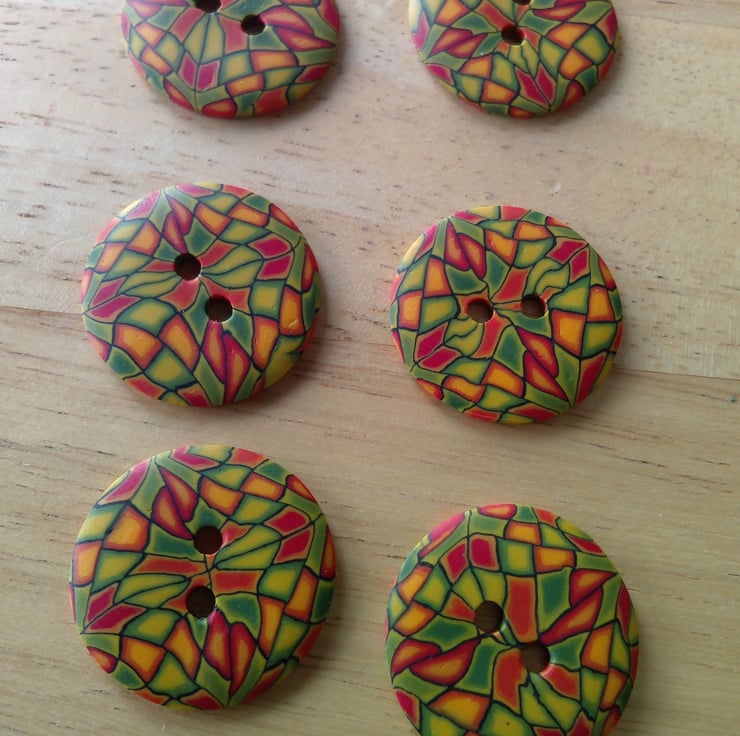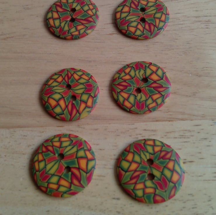 Set of 6 Medium size buttons. Buttons are handmade by me from polymer Fimo clay.