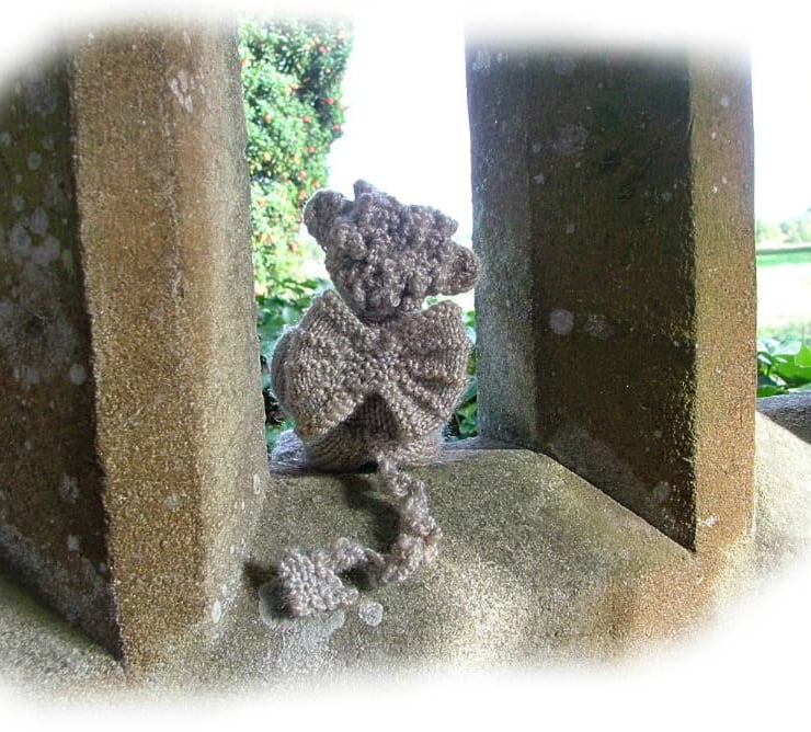 Hello my name is Sebastian of Selby. I am only 11 cm tall and knitted in DK yarn. I'm very easy to knit and can hang in your car or from your handbag for good luck.