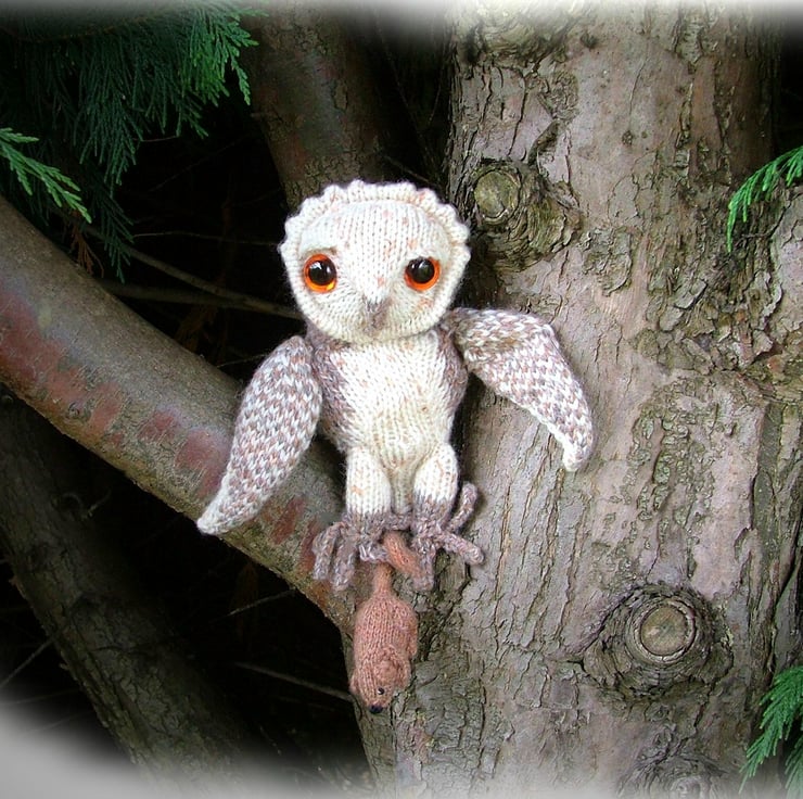 Mr Barn Owl measures 16.5 cm when completed in DK yarn. Please note that the pattern for the dormouse is NOT included. He is very cute and easy to make