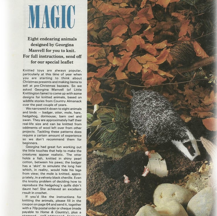 This lovely pattern was designed by Georgina Manvell for Home & Country WI magazine in 1990. We have shown you a picture of the original magazine article called Animal Magic