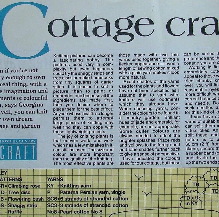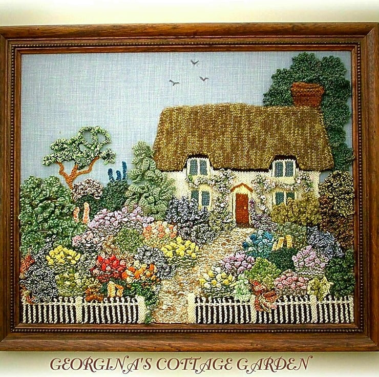 This pattern is for a knitted picture which measures 40.5 x 33 cm in 3 & 4 ply yarns & embroidery threads when completed. The pattern includes charts and full instructions .A wonderful creative project