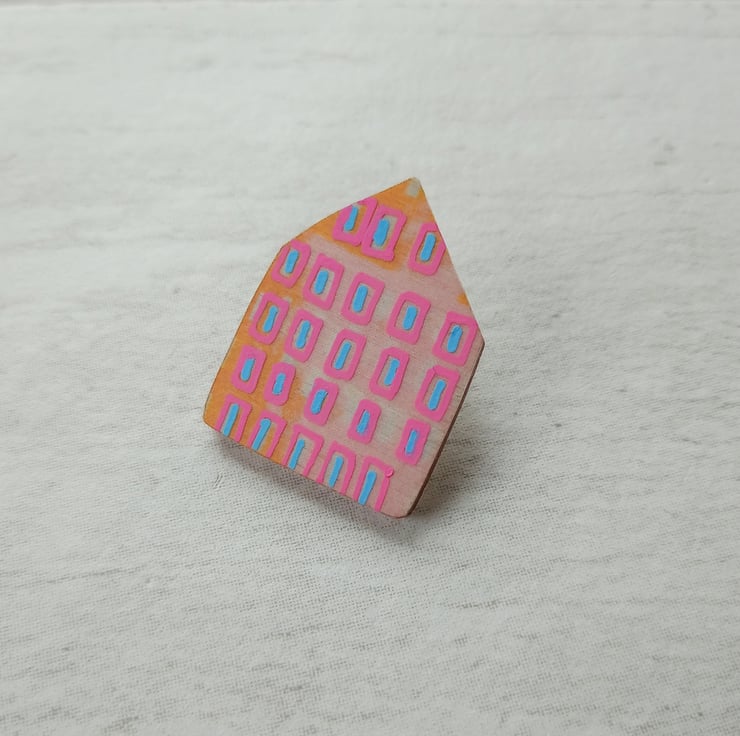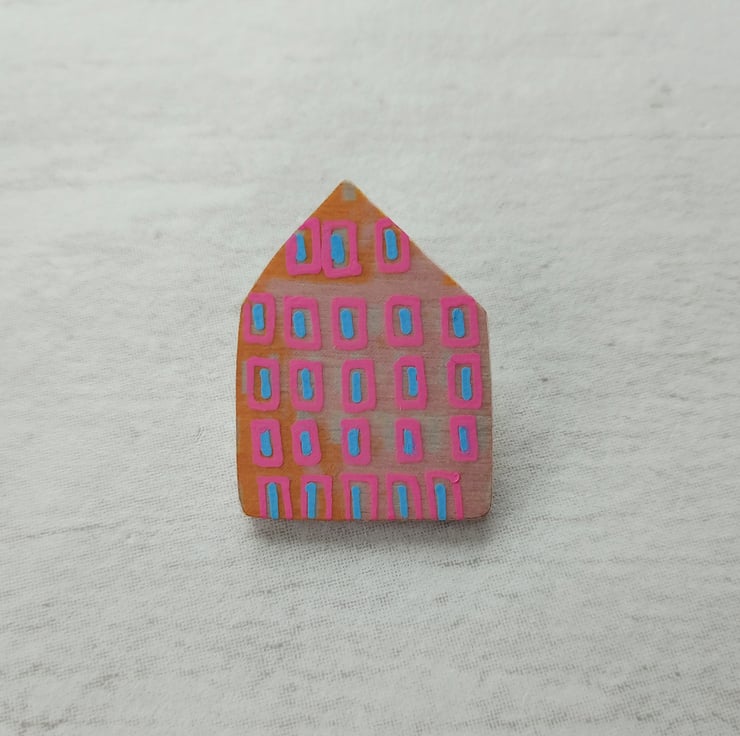 The brooch measures 3.5cm x 2.5cm with a metal lapel pin fastening on the back, perfect for wearing on jackets and jumpers. It would make a great gift for a lover of little houses and original design. The brooch comes attached to a pretty backing card ready to give as a gift or even keep as a present to yourself!