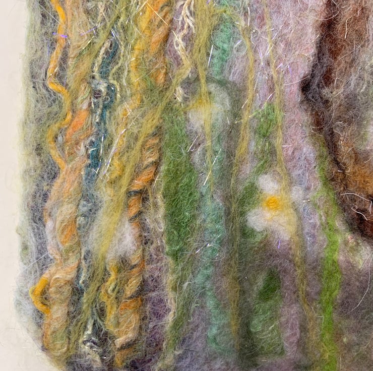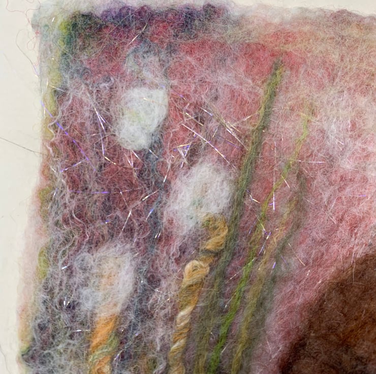 The item is both wet and needle felted from high quality merino wool, silk and other fibres including a little bit of sparkle. An original one-off design this little fellow took approximately 10 to 15 hours to complete.