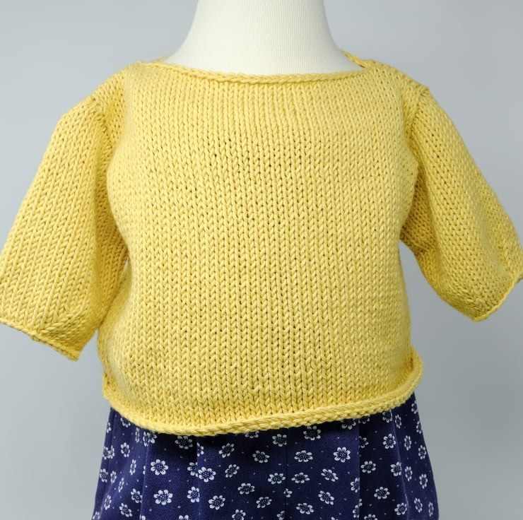 Super soft, loose-fitting jumper, knitted in soft yellow organic cotton.