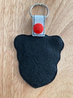 Panda love keyring made from vinyl and backed with felt.