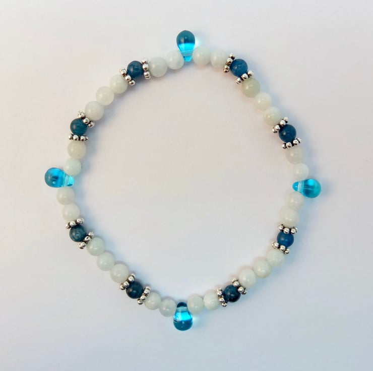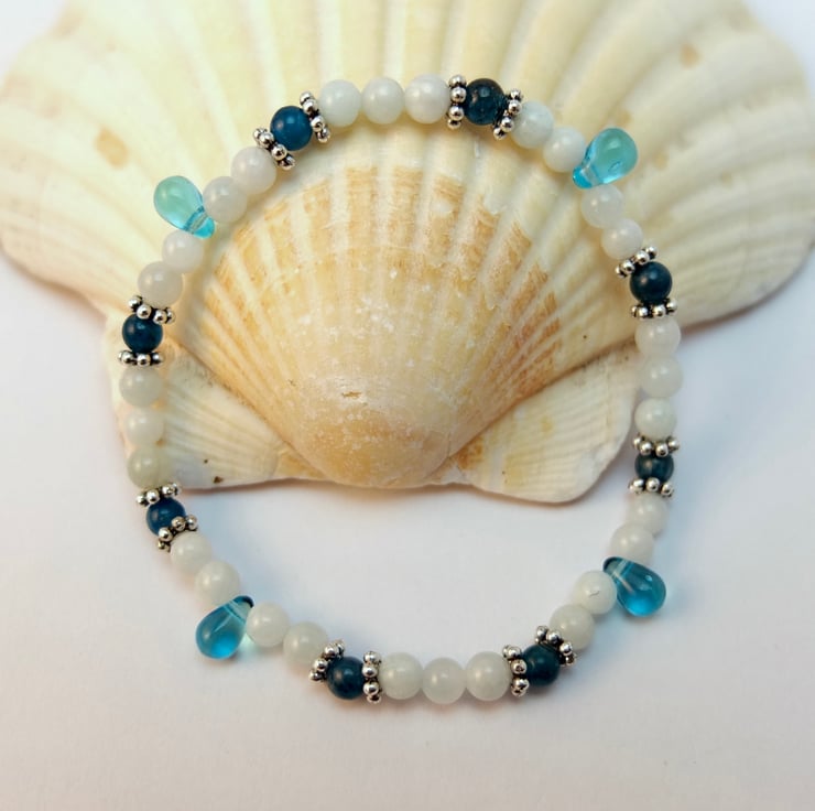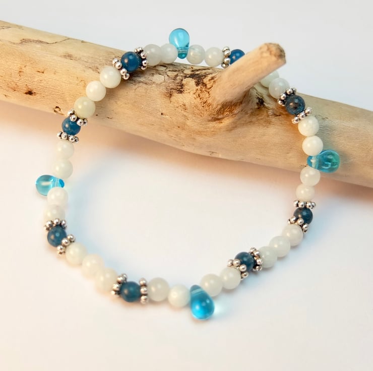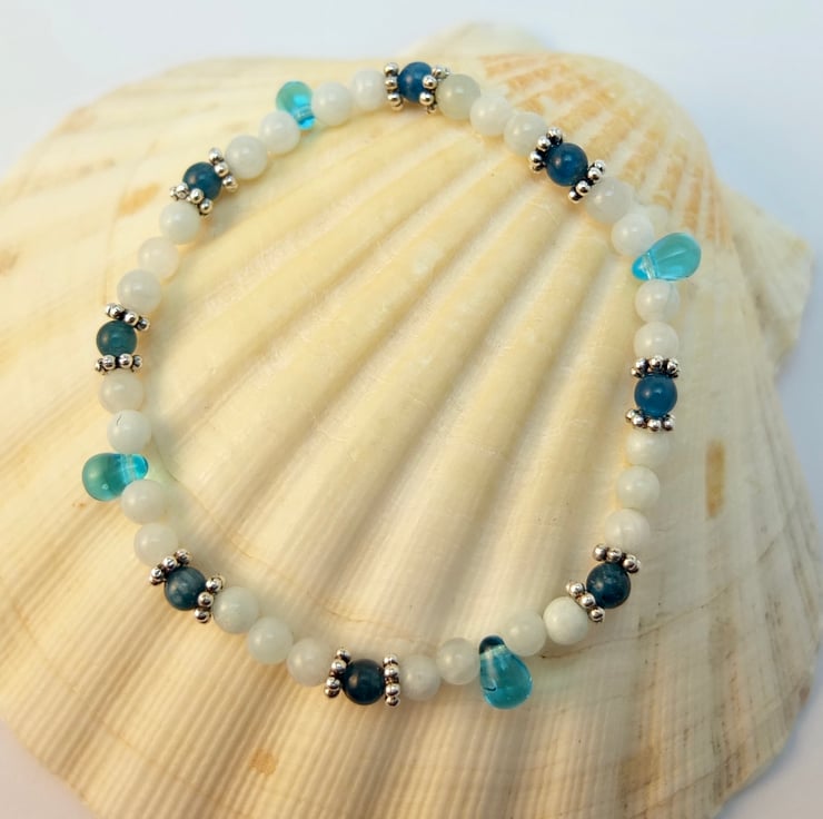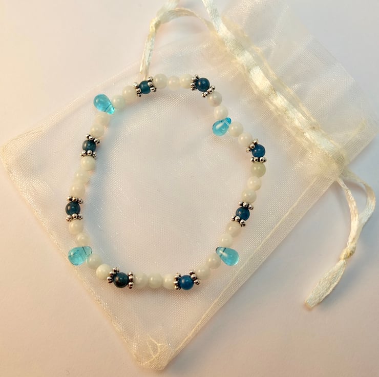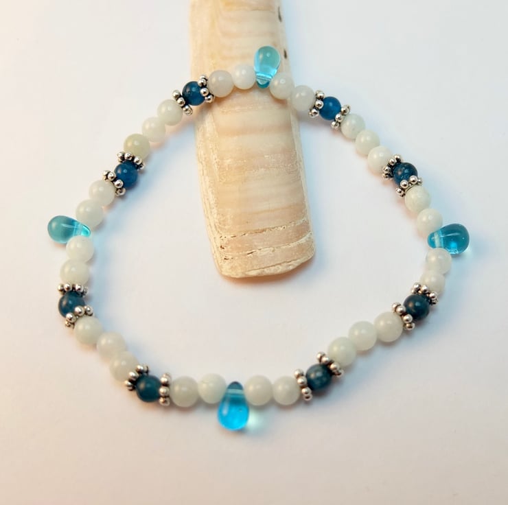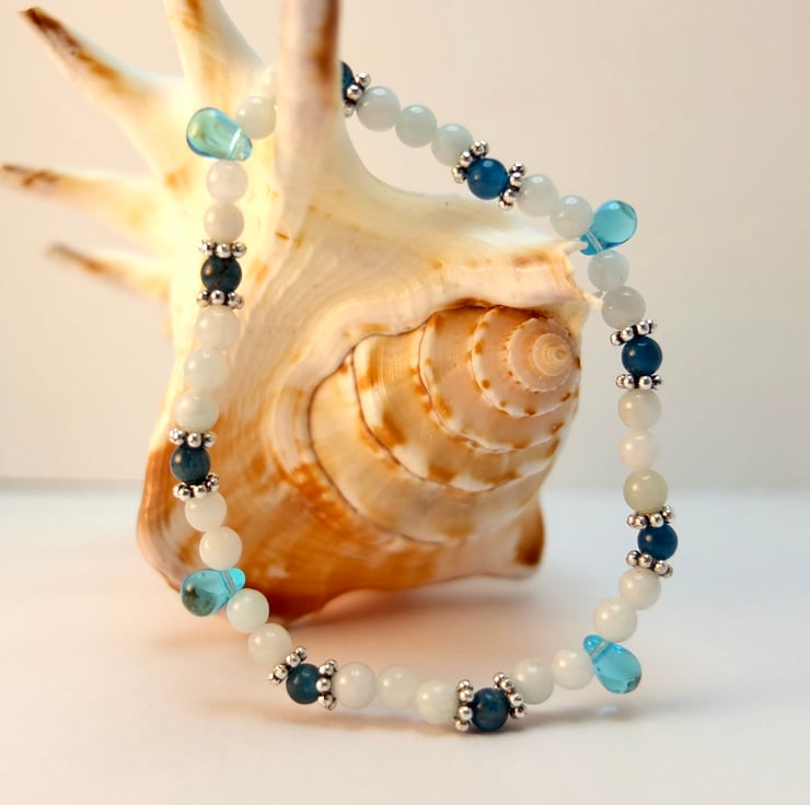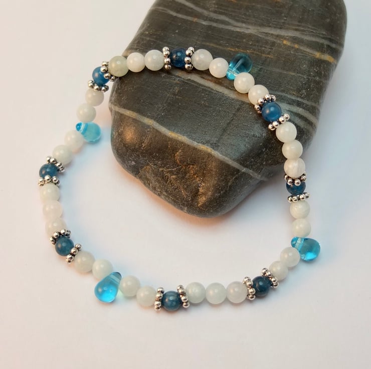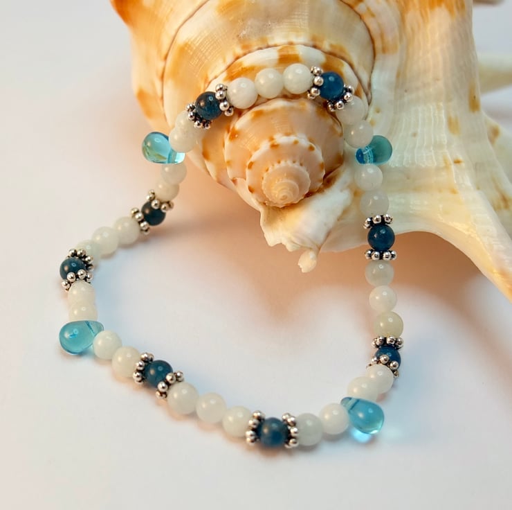 I have made this from a mix of 4mm palest blue aquamarine and darker blue-green apatite beads.