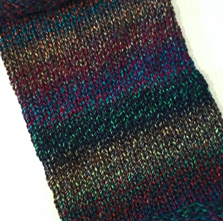 This beautiful cowl has been knitted from soft, chunky acrylic yarn.