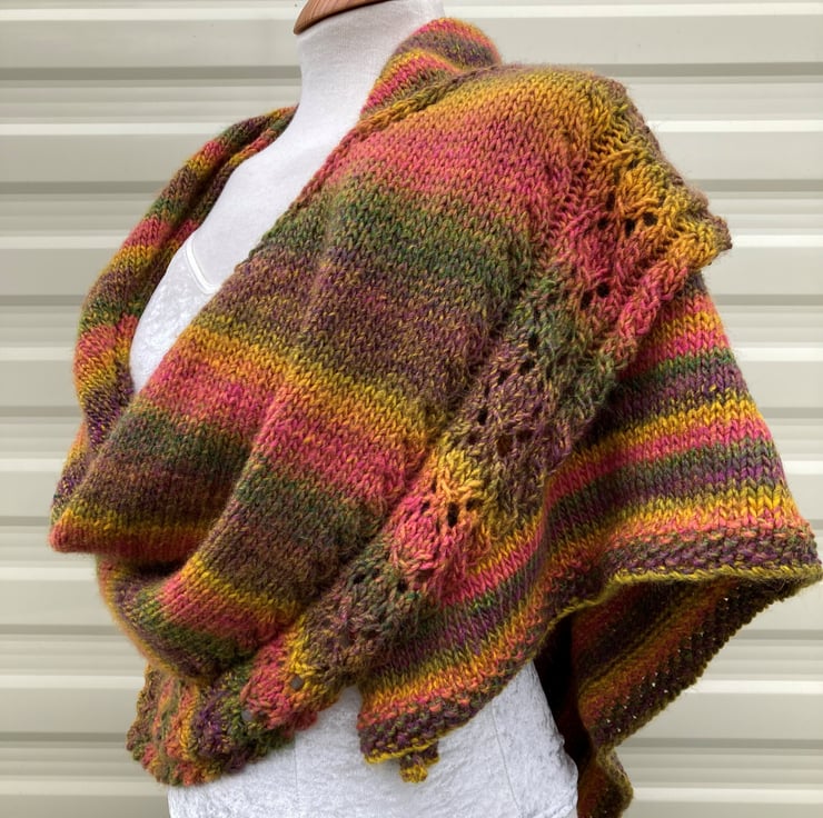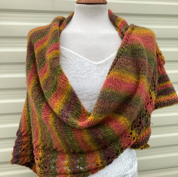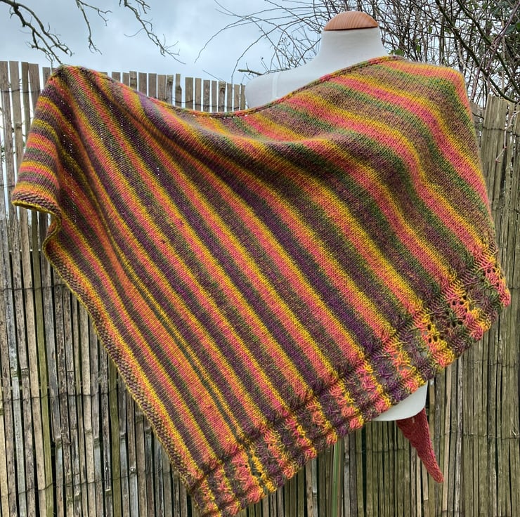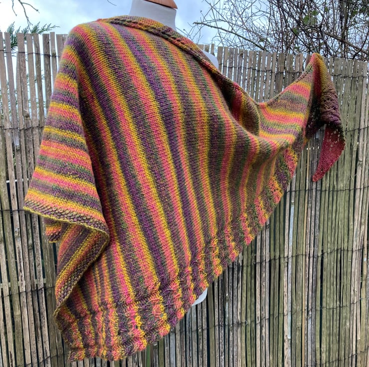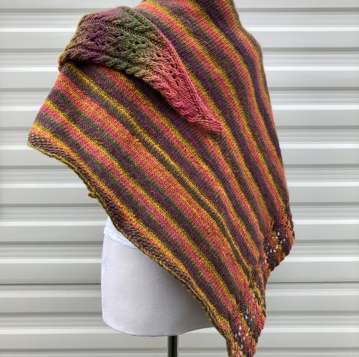 Triangle wrap designed by me starting in one corner and increasing slowly to produce a long acute triangle.