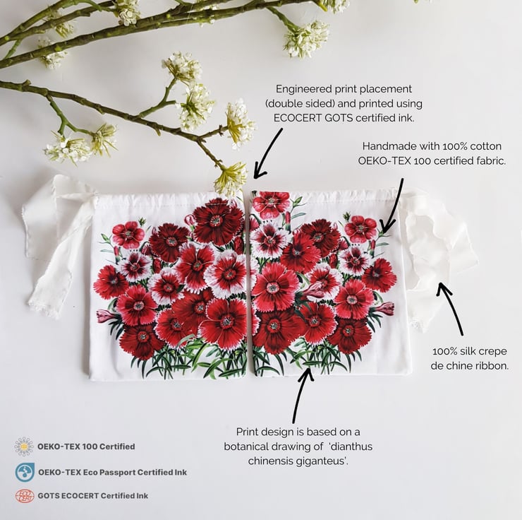 - The fabric has been printed using ECOCERT GOTS certified inks. This means they have been independently checked to ensure they have been made in an environmentally and socially responsible way.