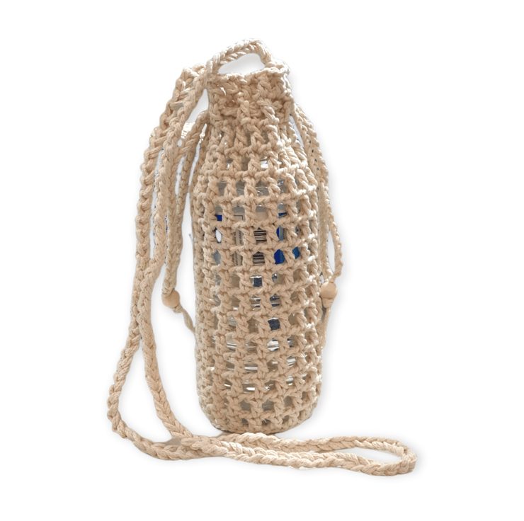 Crochet Water Bottle Holder, handmade with chunky macrame cotton, the quality of the yarn gives holders inevitable comfort, durability, elegance and sustainability. A handy, sturdy and stylish bottle carrier will be one of the favourite accessories that you will never drop off your hand. Use it as a water bottle, drinks bottle holder, flask carrier and carry it with you everywhere you go. Never feel thirsty again.