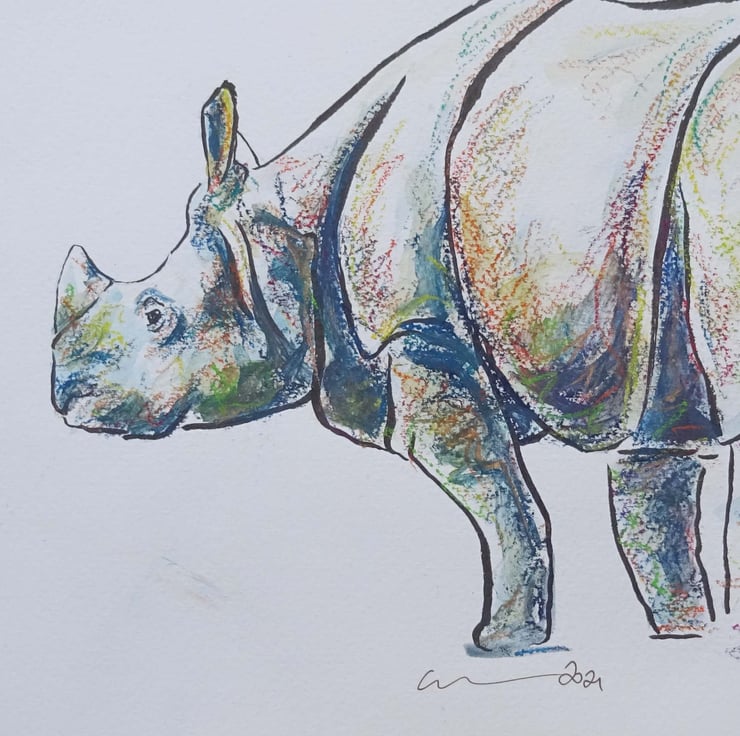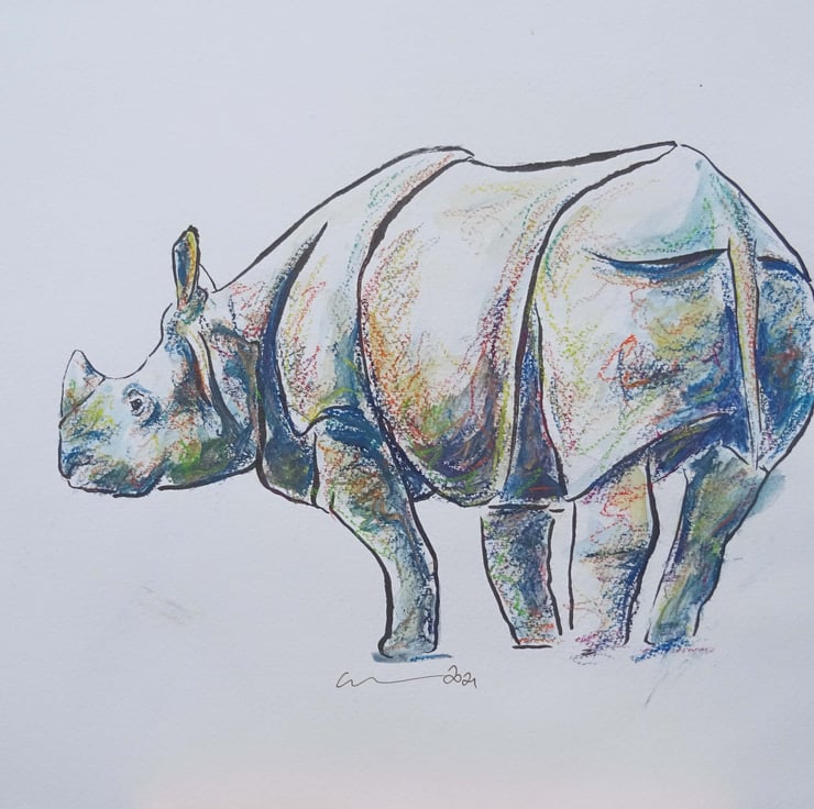 Image has been sprayed with fixative but a small amount of the crayon may smudge if touched.