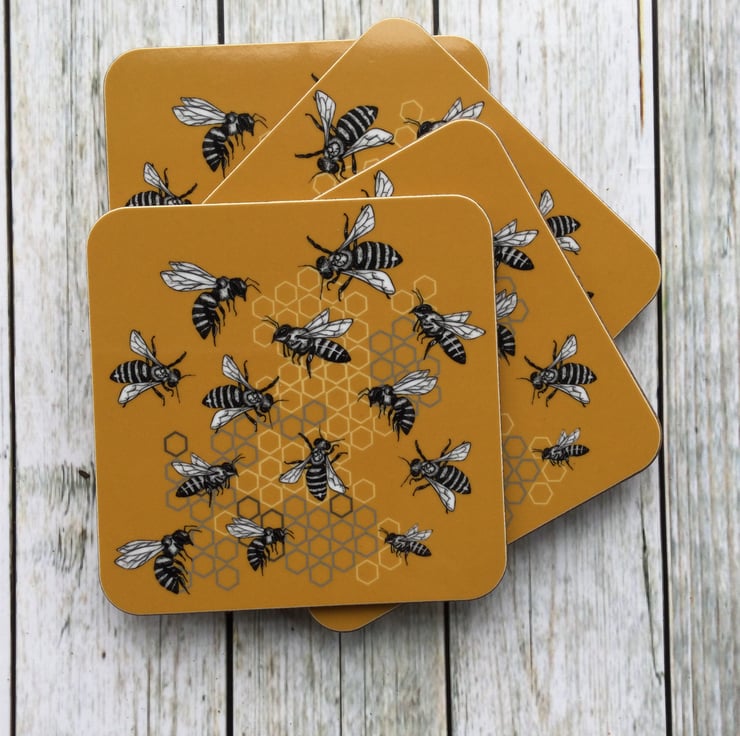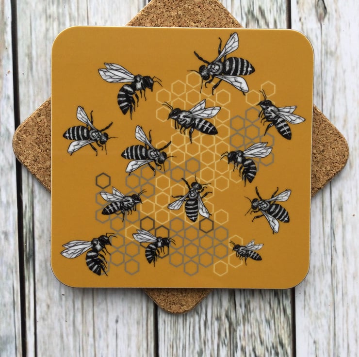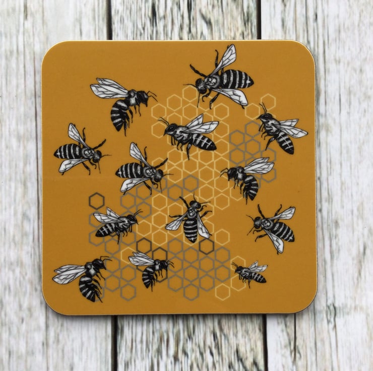 This Rabble of Bees Coaster is available individually or as a set. All my designs are brightly coloured and inspired by the beautiful Scottish wildlife.