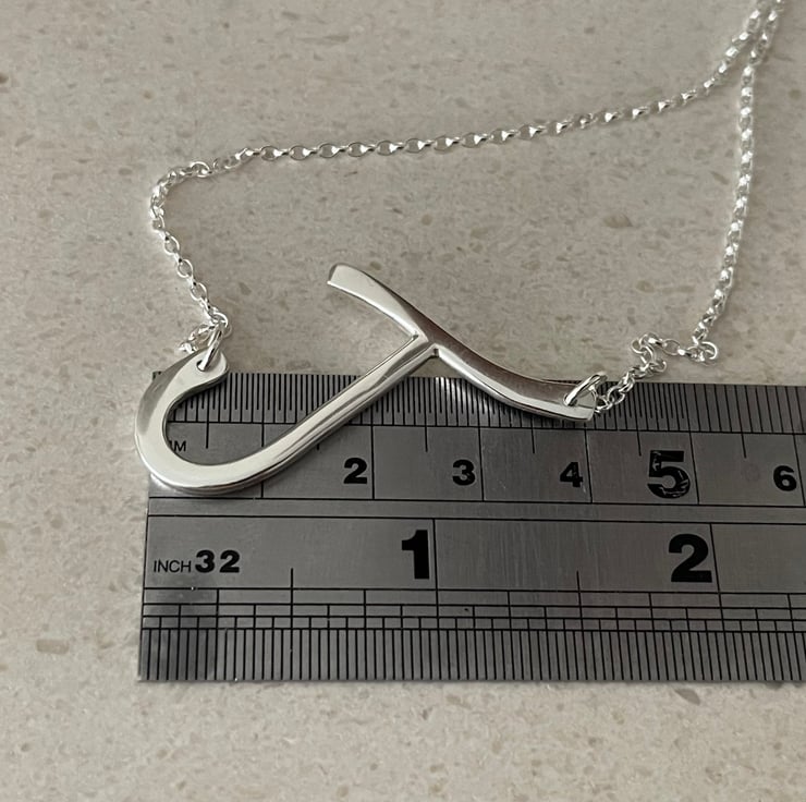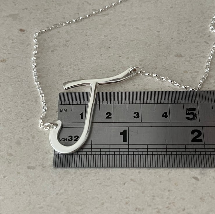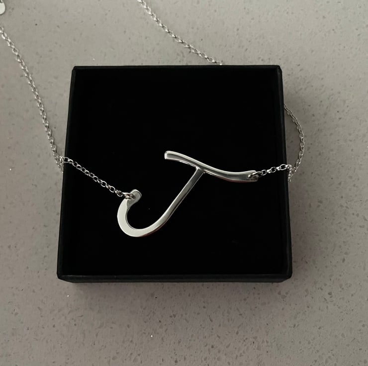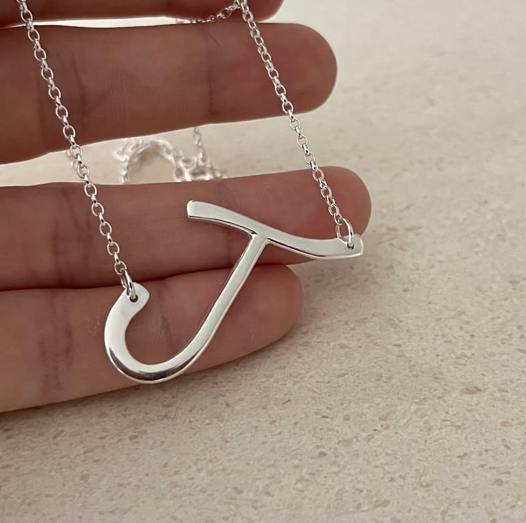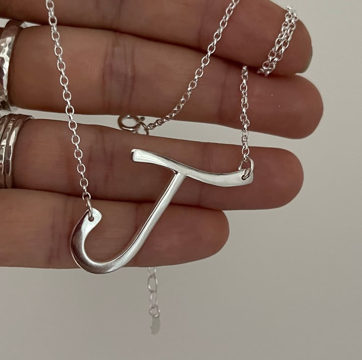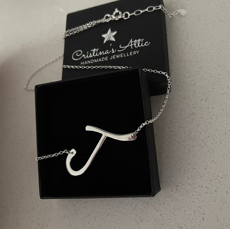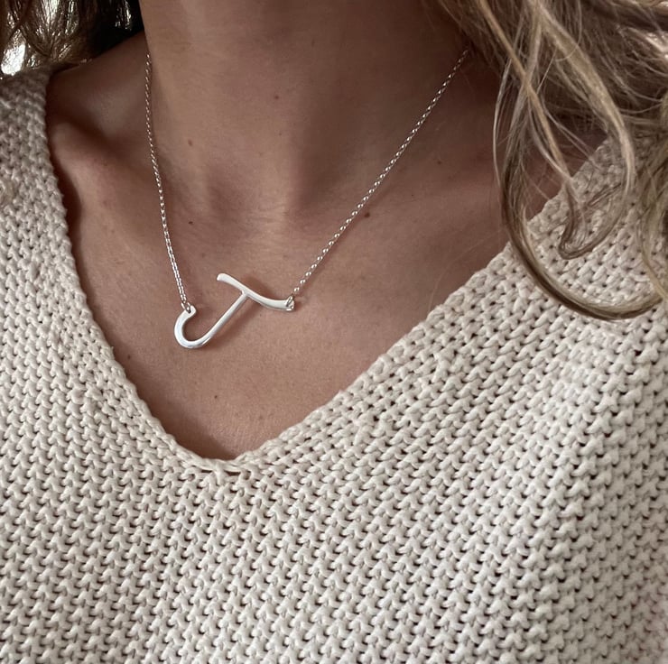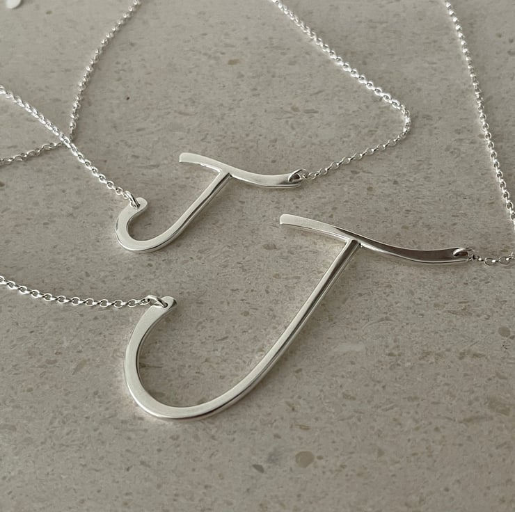 A trendy, stylish, handmade letter J necklace in a medium size, made from solid sterling silver.