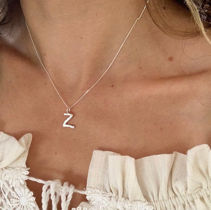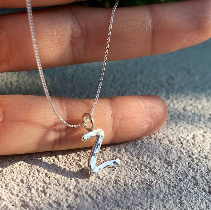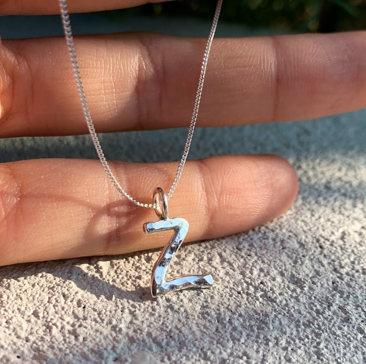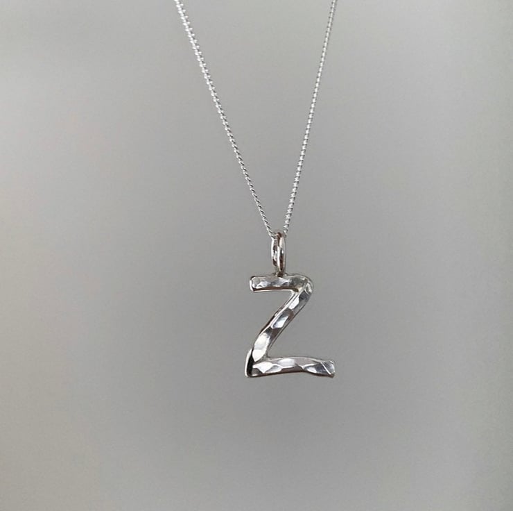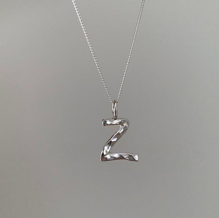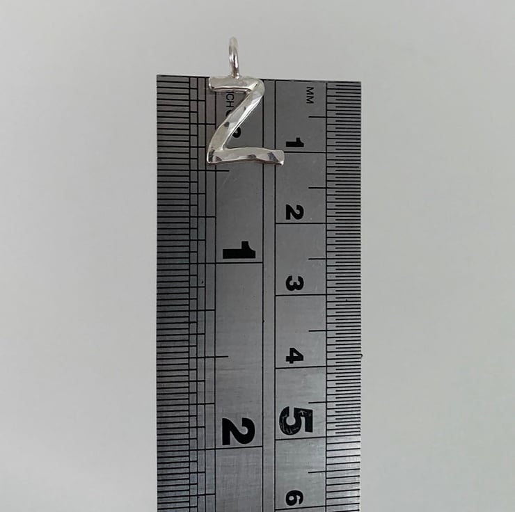 The Z is made from 2mm thick solid silver and measures approximately 1cm in height not including the little ring connector.