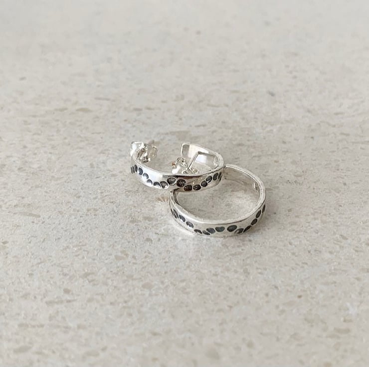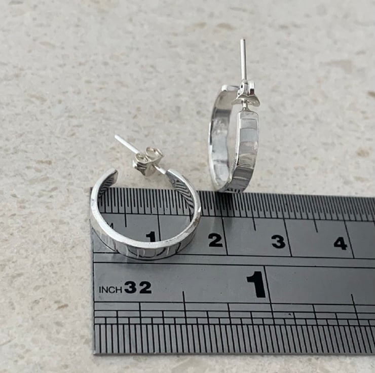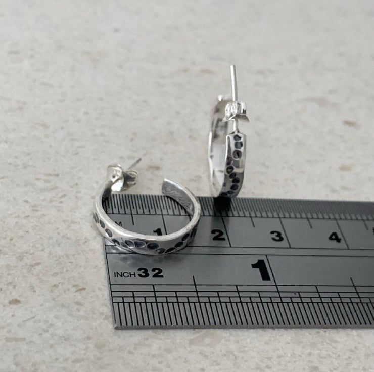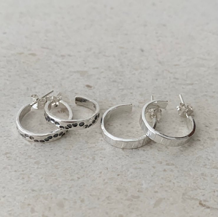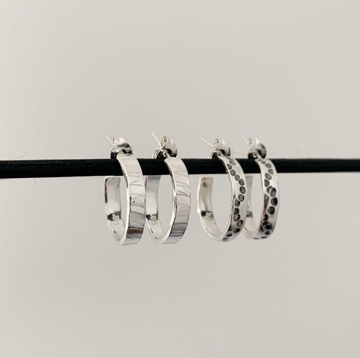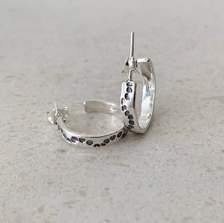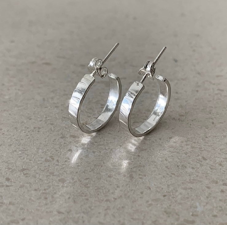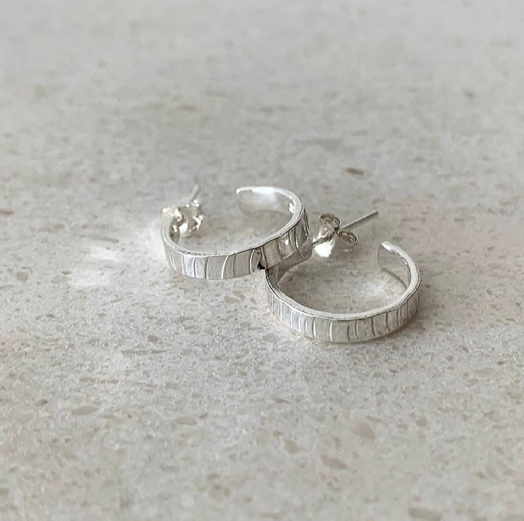 Handmade small open hoop earrings made from solid sterling silver, which had been gently hammered for a lovely texture and extra shine. The hammered texture gives them an elegant, sophisticated look and makes them very eye catching.