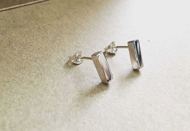 Classic bar studs handmade from 3mm thick sterling silver with a smooth finish. They are very stylish, comfortable and elegant.