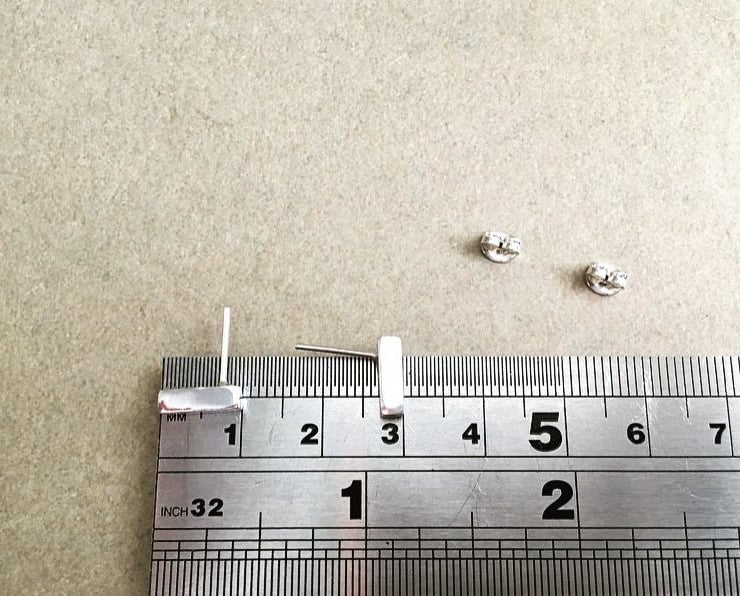 They are approximately 1cm long by 3mm wide and they come with sterling silver scroll backs.
