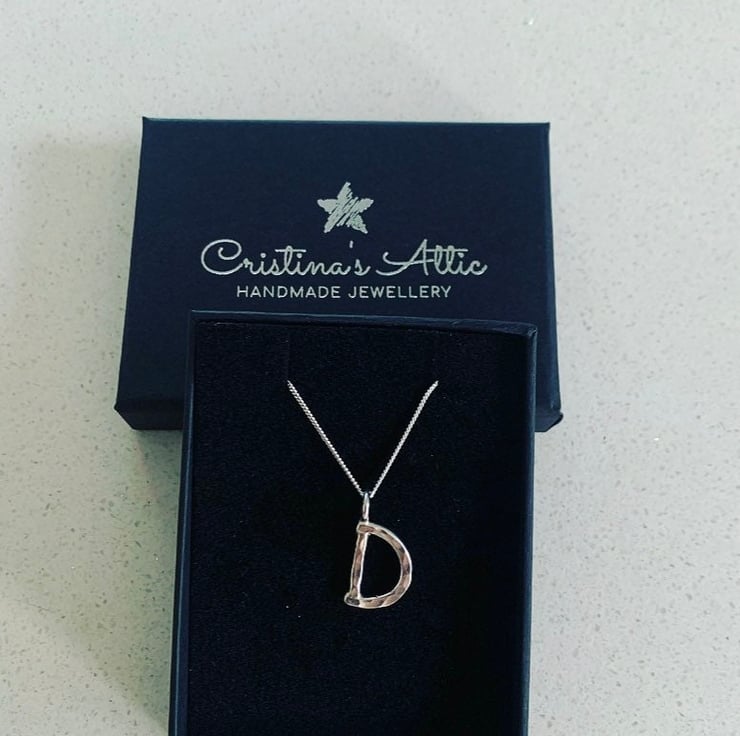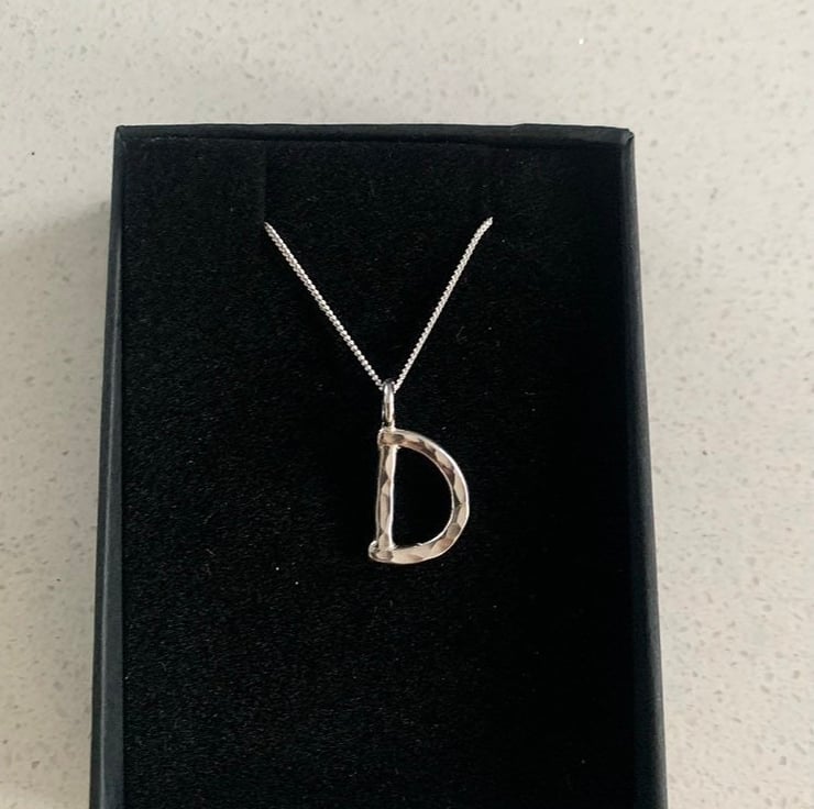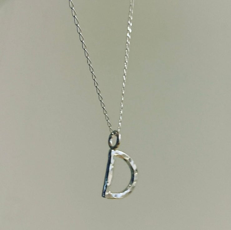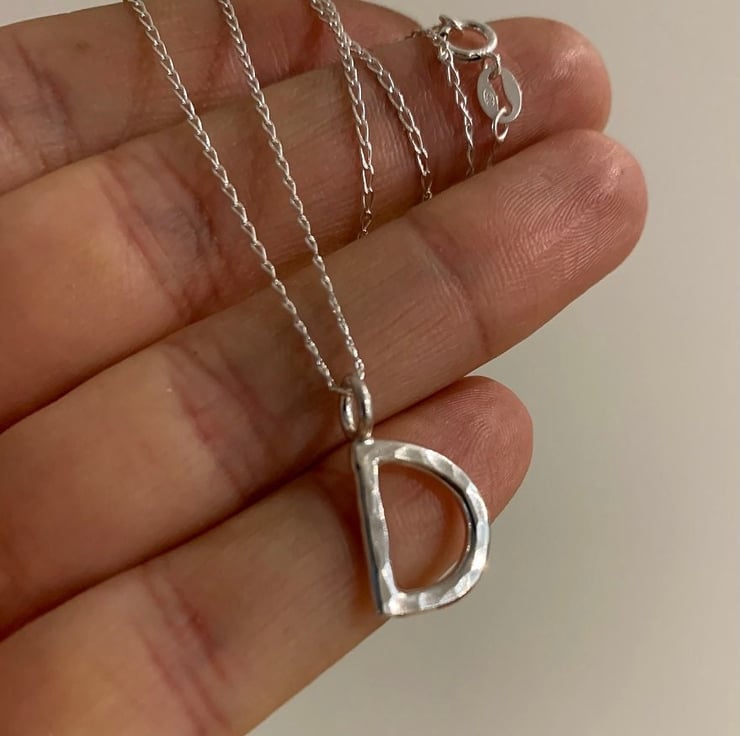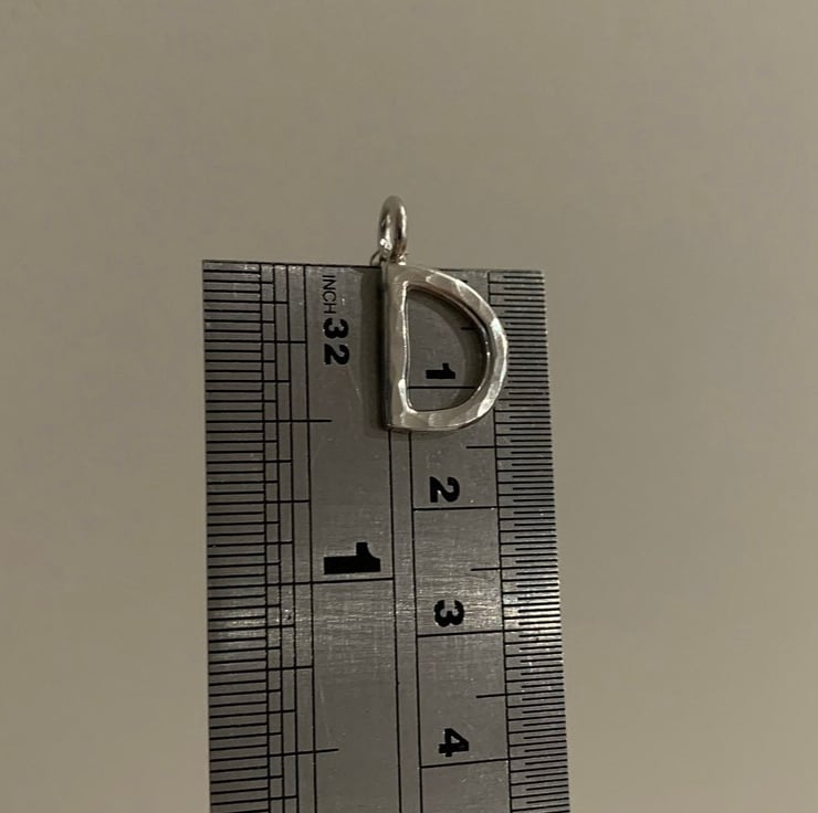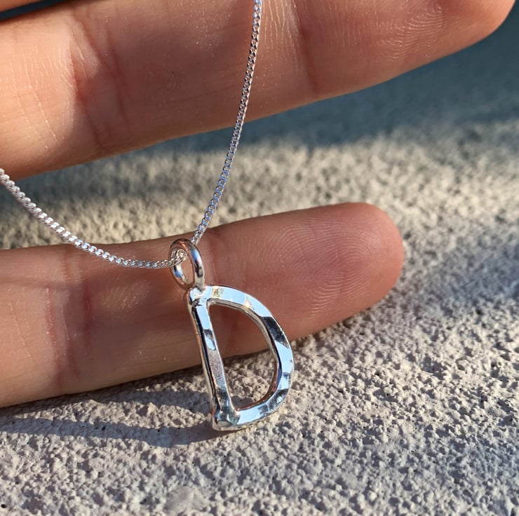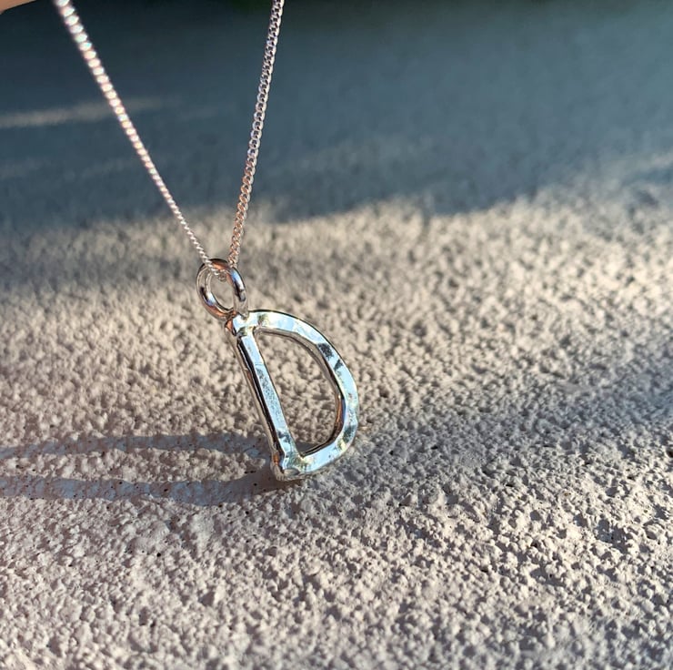 The D is made from 2mm thick solid silver and measures approximately 1cm in height not including the little ring connector.
