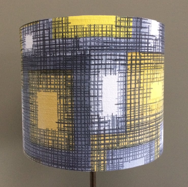 Mid Century 50s 60s Abstract Rectangles Grey and Yellow Barkcloth Vintage Fabric Lampshade - genuine vintage fabric in super condition.