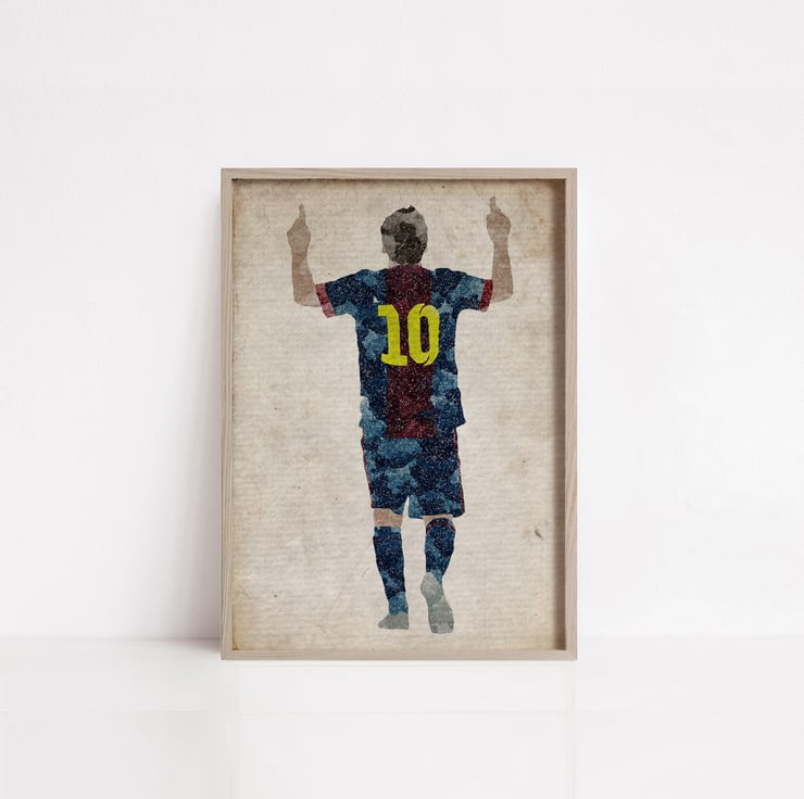 Lionel Messi pointing to the sky watercolour print, available as A3, A4, and A5