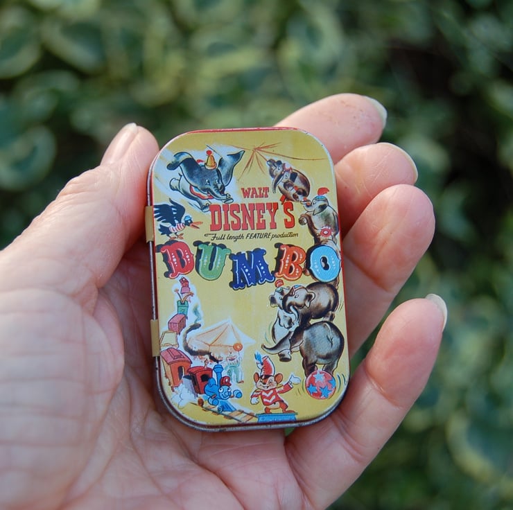 I came across this small Dumbo tin in a charity shop. I just had to buy it and make a miniature elephant to be kept safe in the tin.
