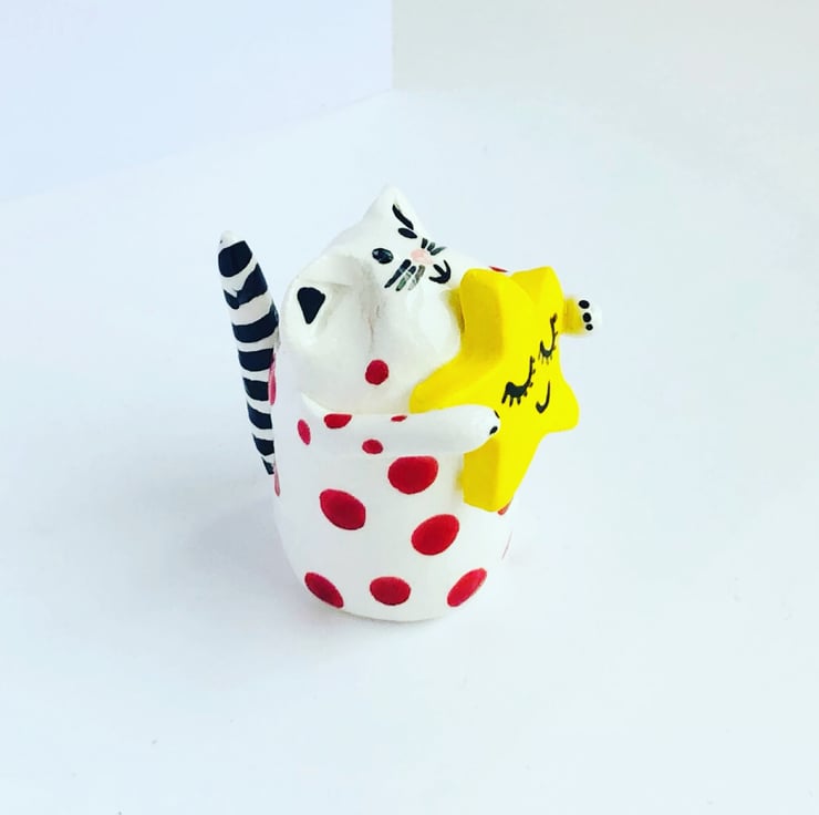 Luna the “Love Cat” has been handmade from porcelain clay and decorated with colourful underglazes. She has then been fired twice in the kiln - the second firing with a transparent glossy glaze. She measures 5cm tall and is completely unique. Luna would make a wonderful gift to treasure!