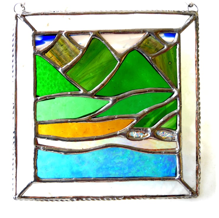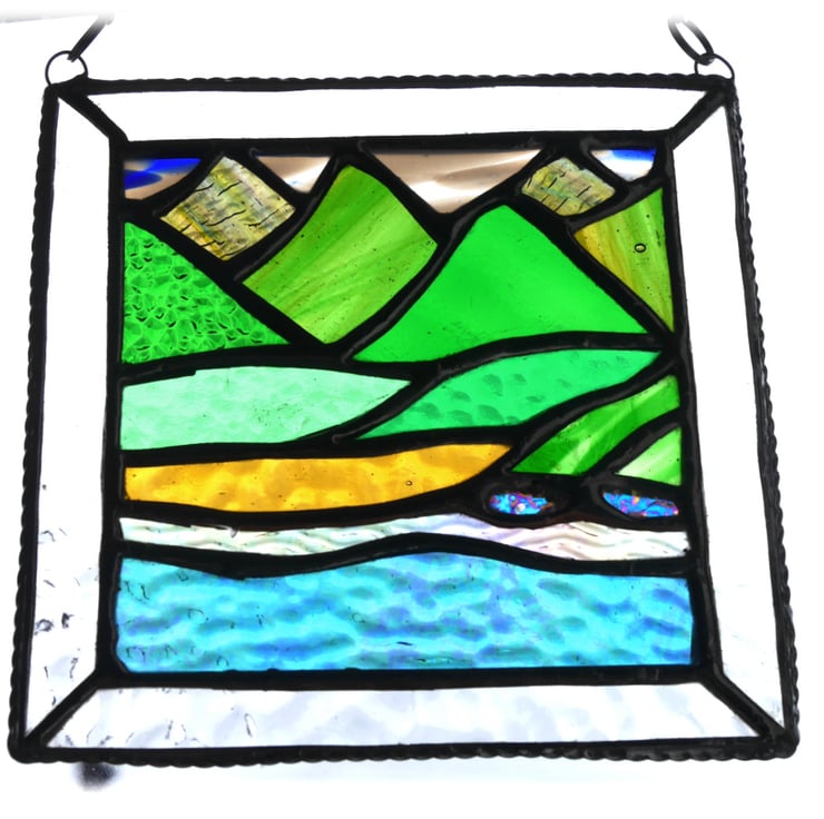 This is a stained glass suncatcher made using the Tiffany copper foil technique. One of my very own designs and I think it is quite stunning and very special.